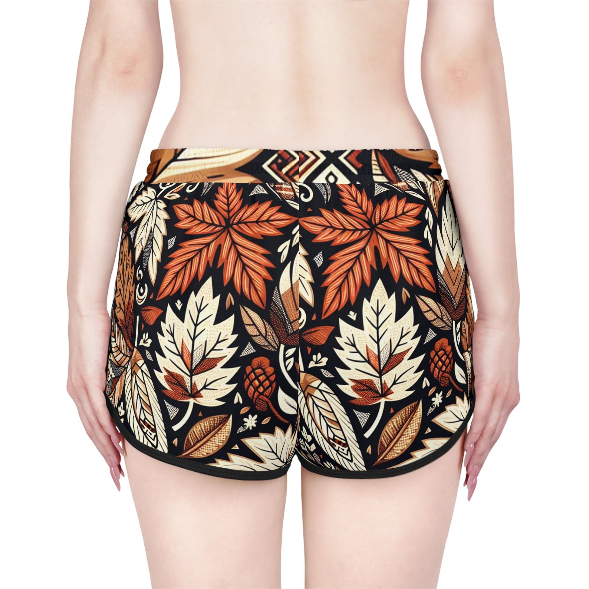 Autumn Leaf Print Women's Relaxed Shorts, Boho Style Lounge Shorts, AOP Shorts for Casual Wear, Fall Fashion, Summer Beachwear, Gift for Her