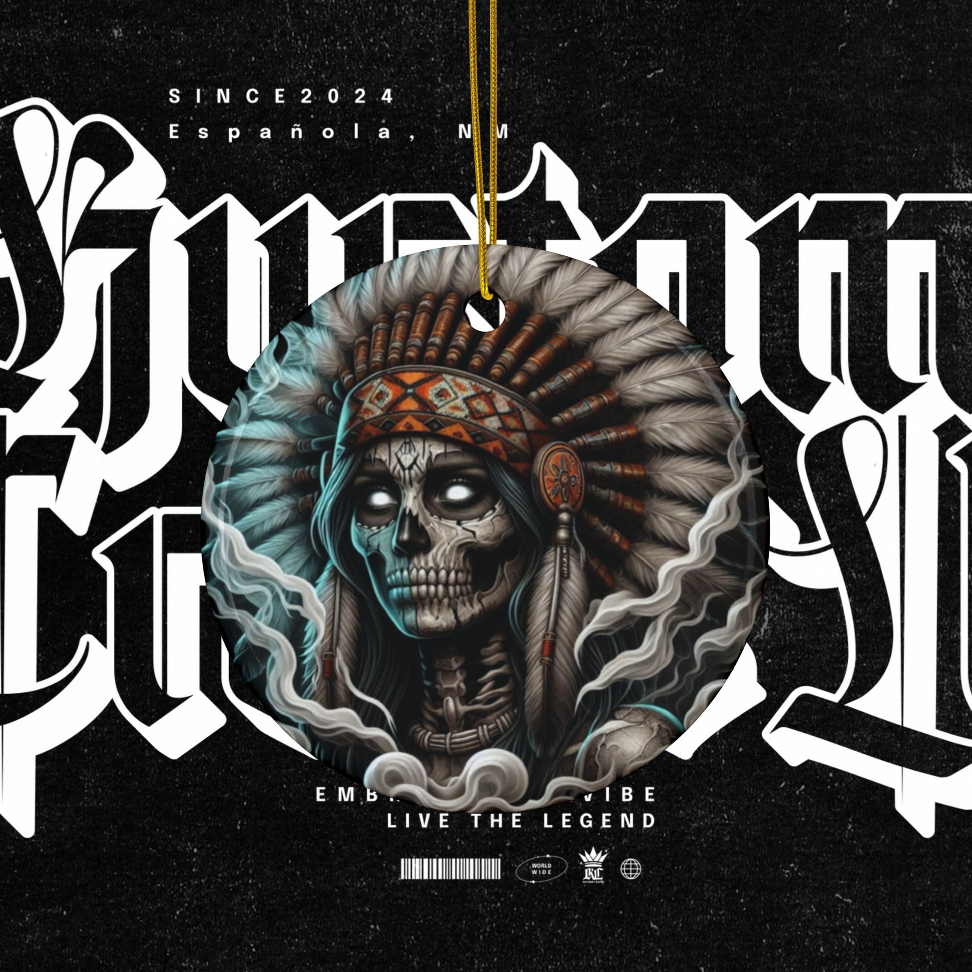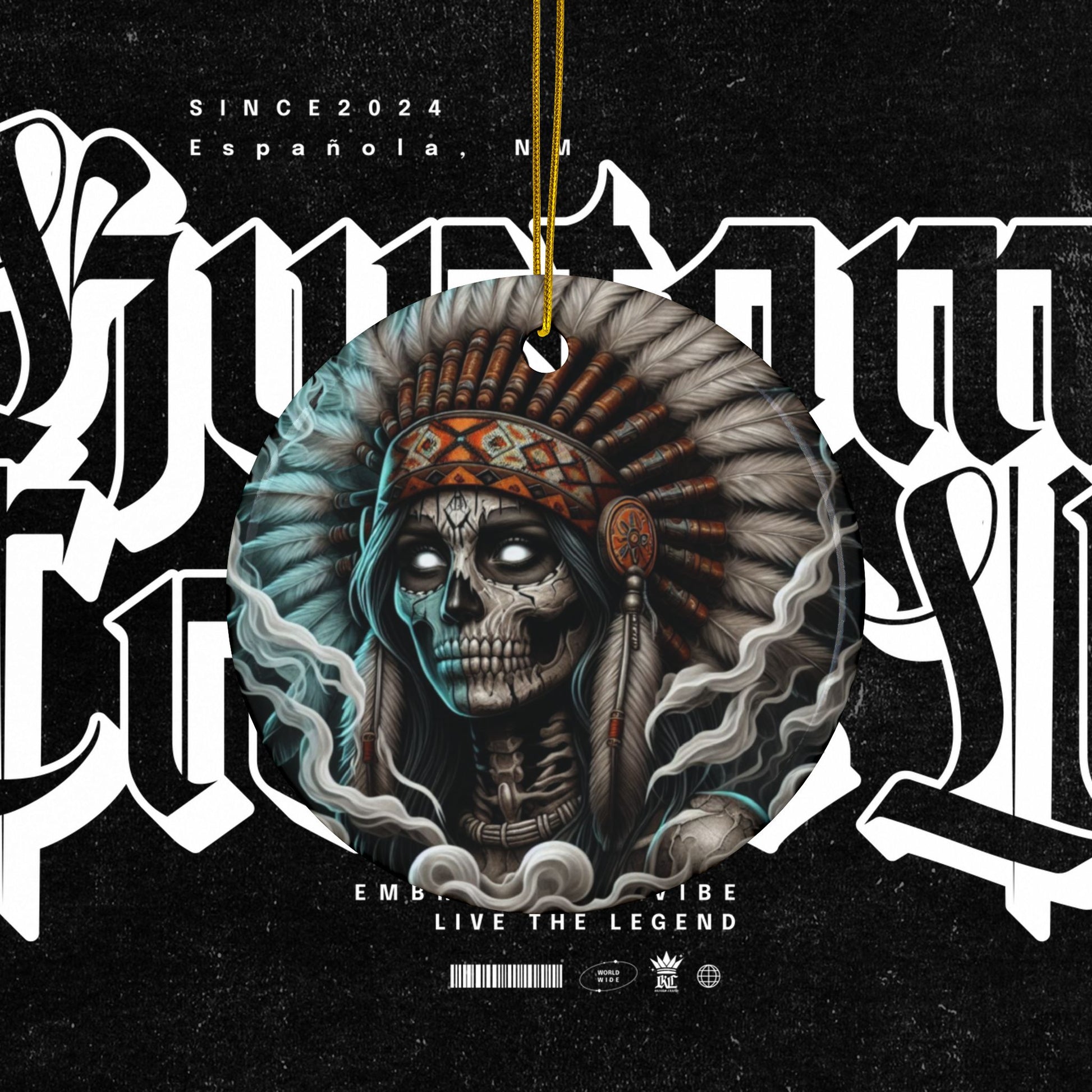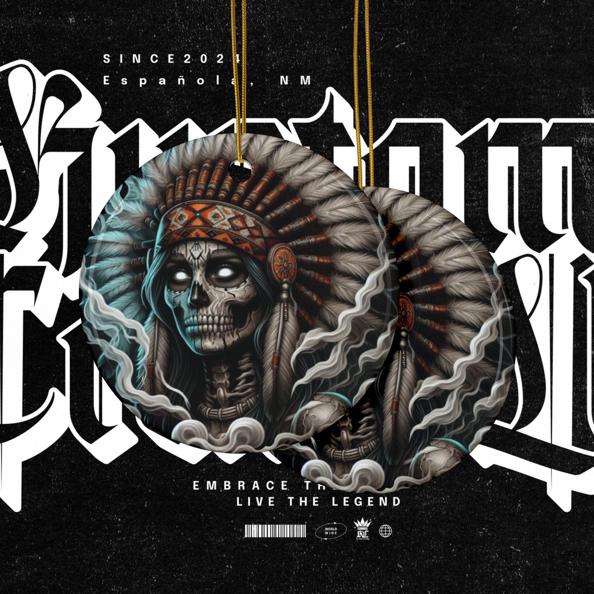 Celebrate Dia De Los Muertos with these vibrant ceramic ornaments featuring themed an Ancestor with a head piece on both sides of the ornament. Perfect for adding a festive touch to your holiday decor or as a unique gift for your loved ones. Relevant for those who appreciate colorful and cultural decorations for holidays and celebrations.