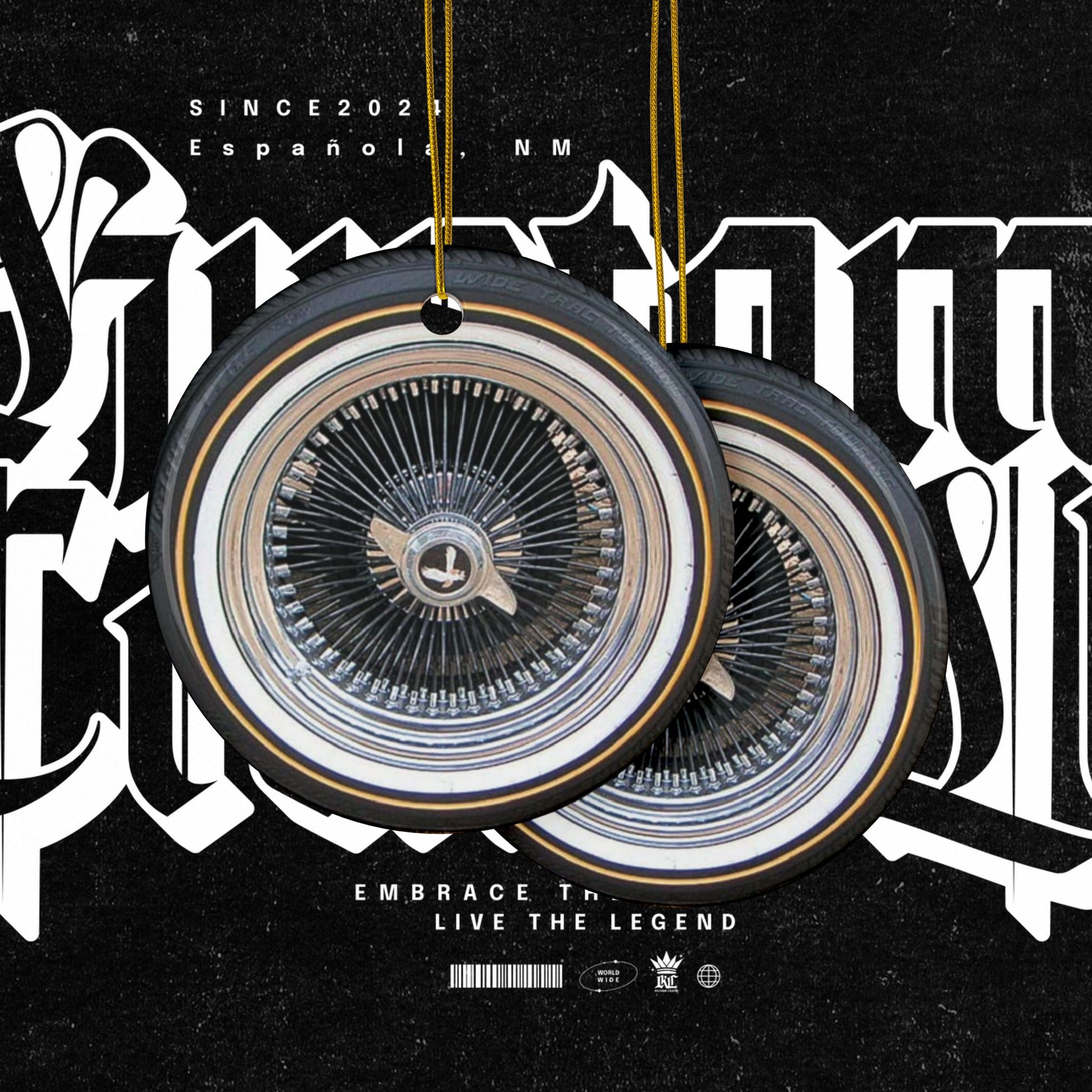 Badass lowrider white wall Christmas ornaments that add a unique touch to your holiday decorations. Perfect for those who love car culture and want to make a statement on their tree. Ideal for Christmas and car enthusiasts.