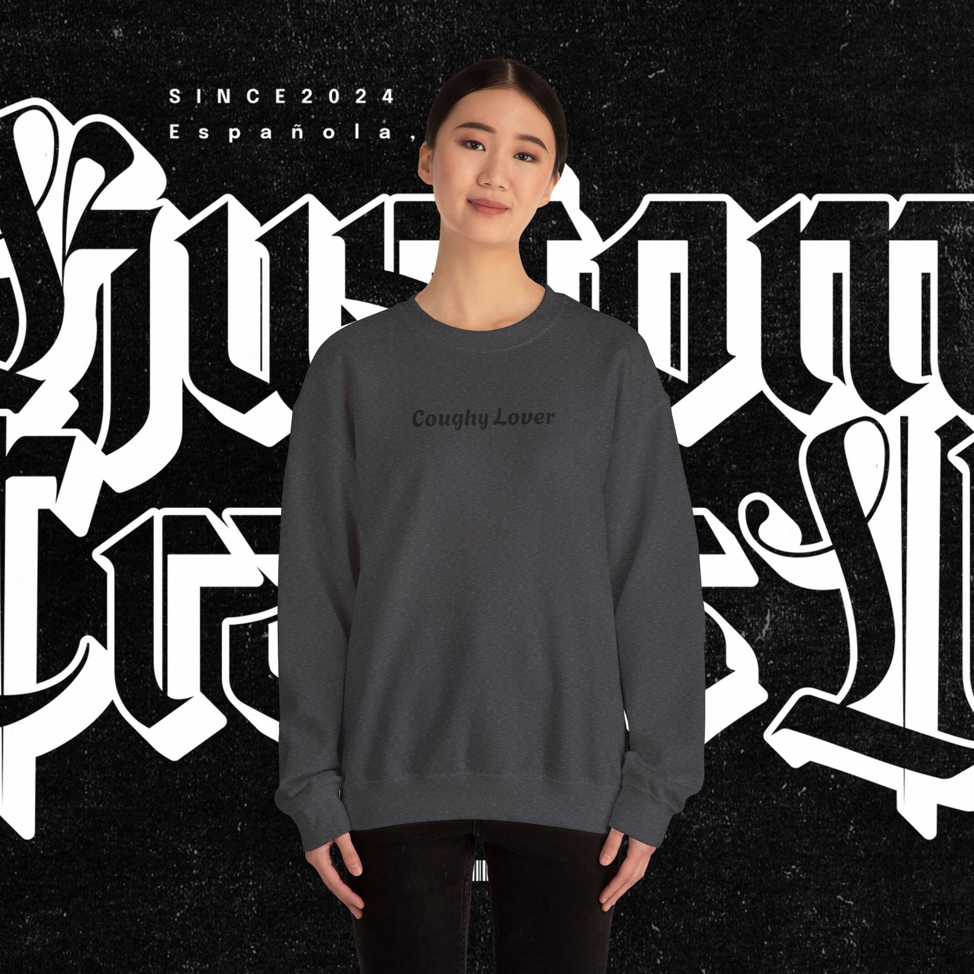 A cozy unisex crewneck sweatshirt featuring the fun and quirky 'Coughy lover' design for coffee enthusiasts who enjoy a good laugh. Perfect for lounging at home or running errands, this sweatshirt offers a comfortable fit and durability for everyday wear. Ideal for adults who appreciate a good cup of coffee and have a sense of humor. Great for gifting during the holiday season or birthdays.