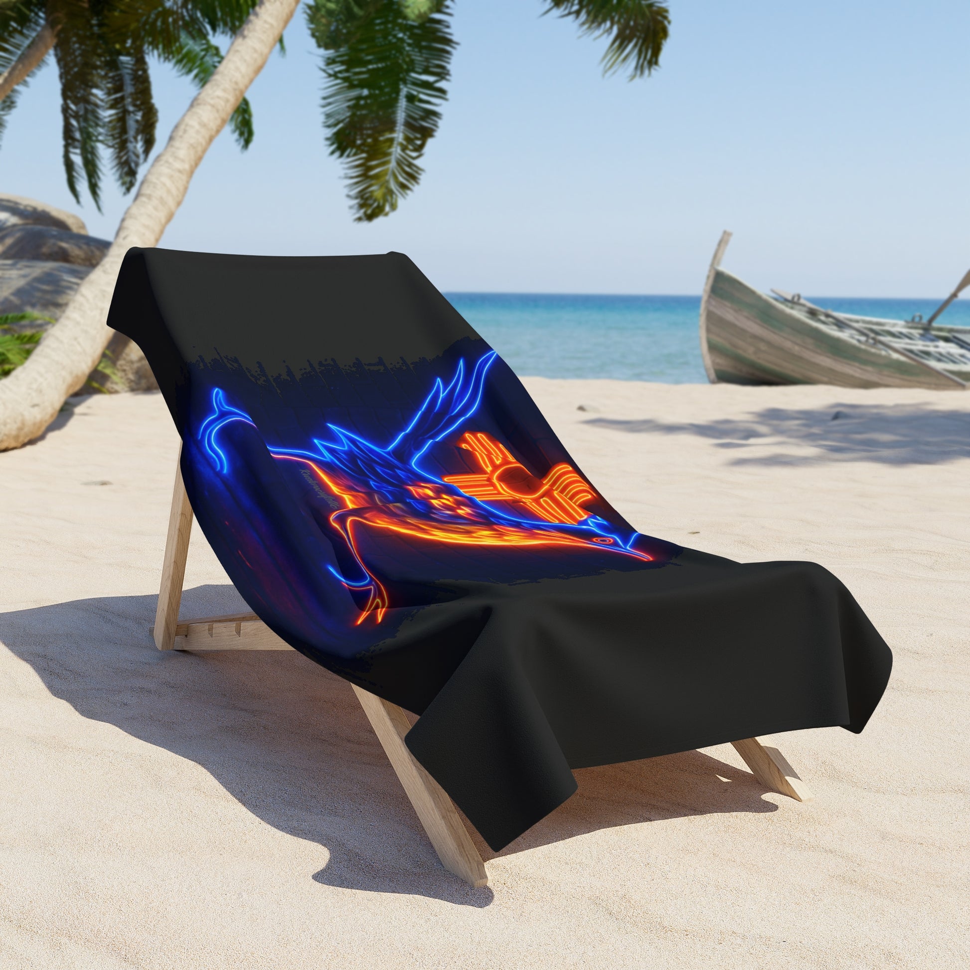 Vibrant neon Roadrunner towel that gives off a fun and energetic vibe, perfect for beach days and poolside lounging. Ideal for adults who enjoy unique and colorful accessories. Great for gift-giving during summer holidays and beach vacations.