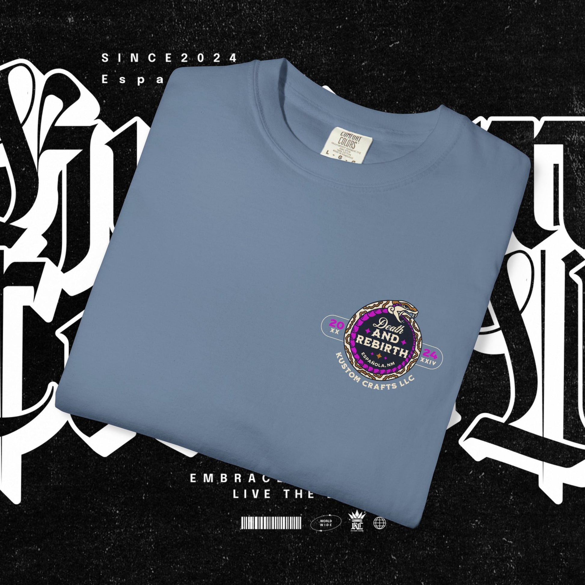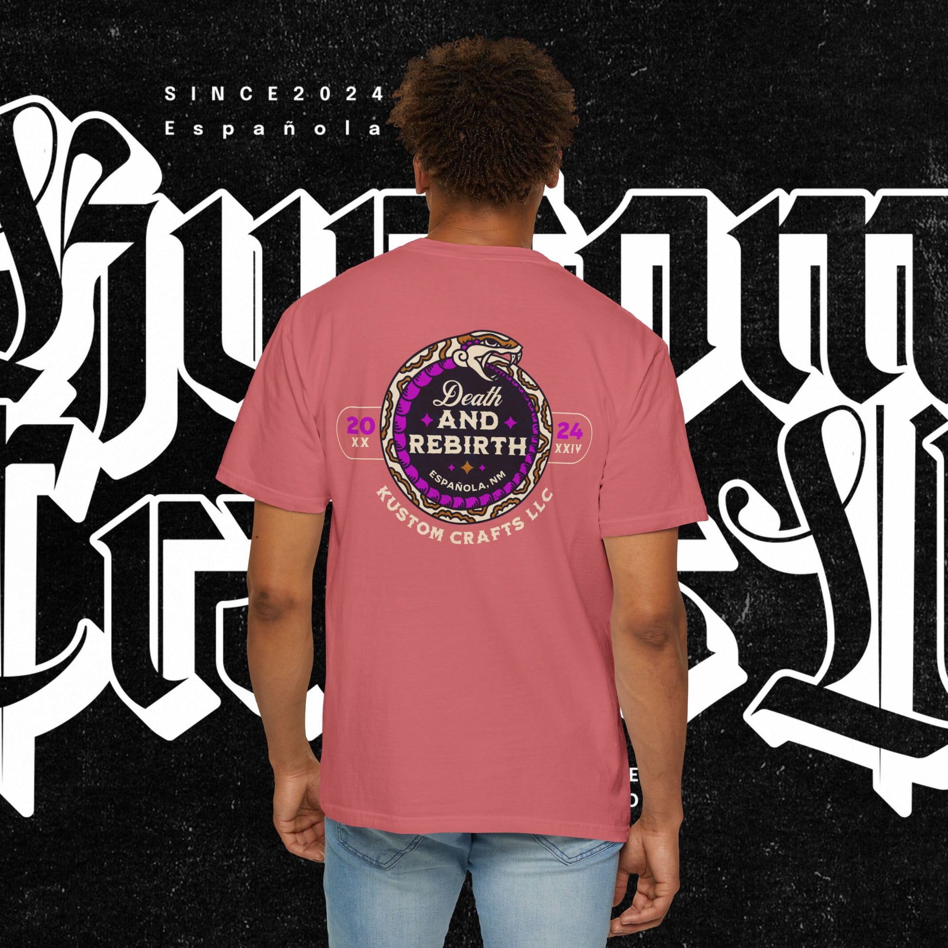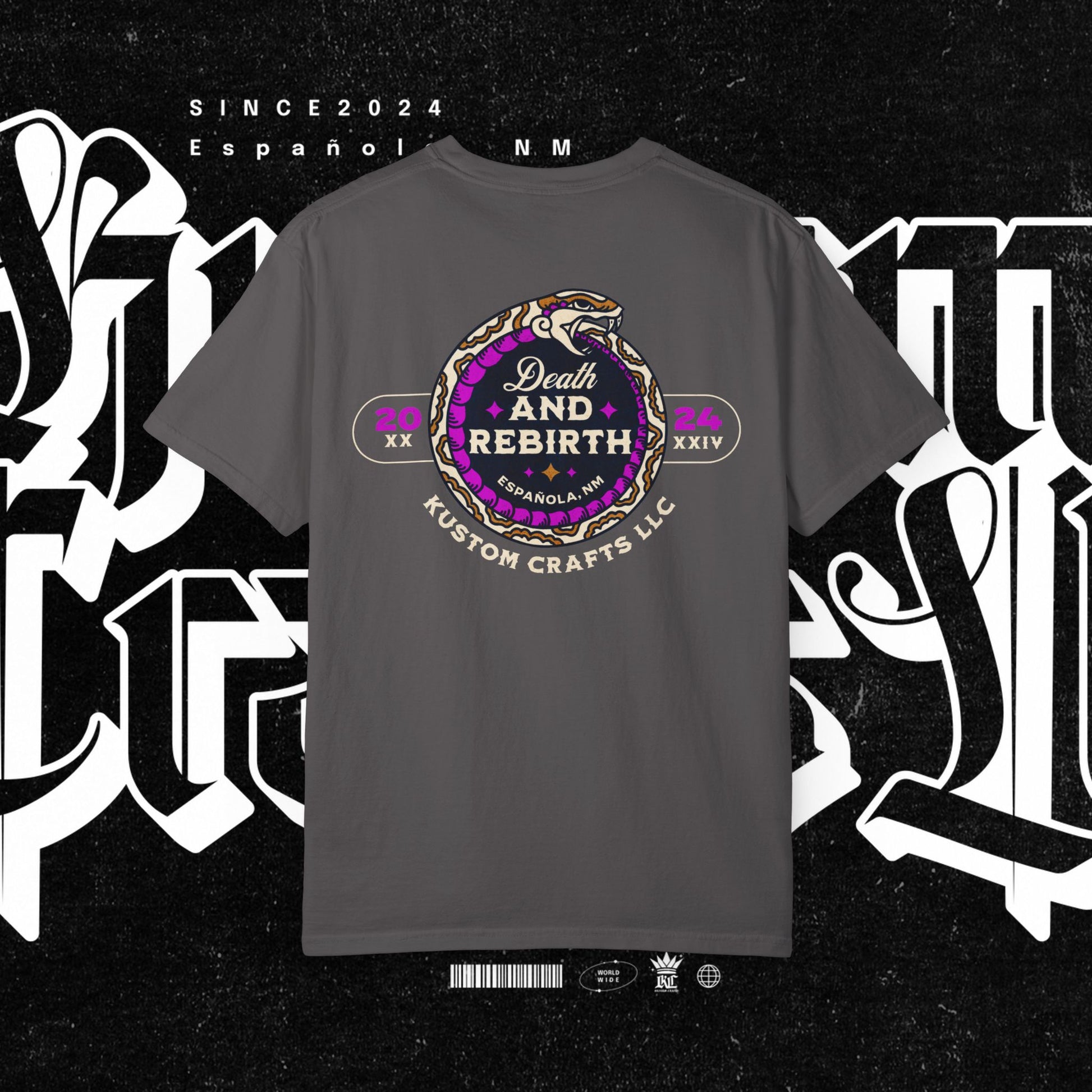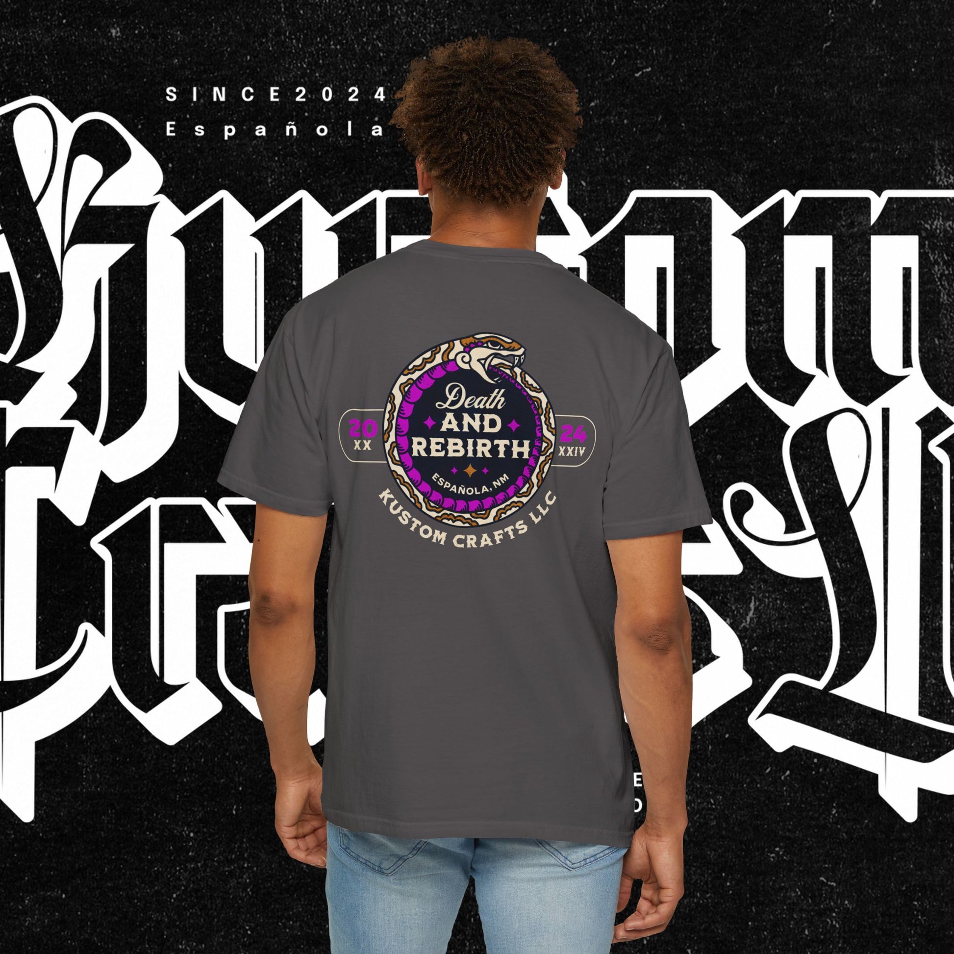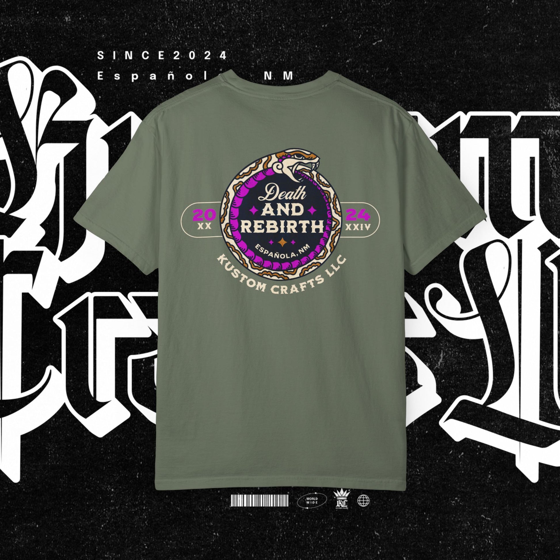 This graphic t-shirt features a striking snake design symbolizing death and rebirth, making it a perfect addition to any streetwear collection. The unisex garment-dyed t-shirt offers a relaxed fit and comfortable feel, suitable for both casual and semi-formal settings. Ideal for adults looking for a unique and edgy style, this t-shirt is perfect for holidays, celebrations, and everyday wear.