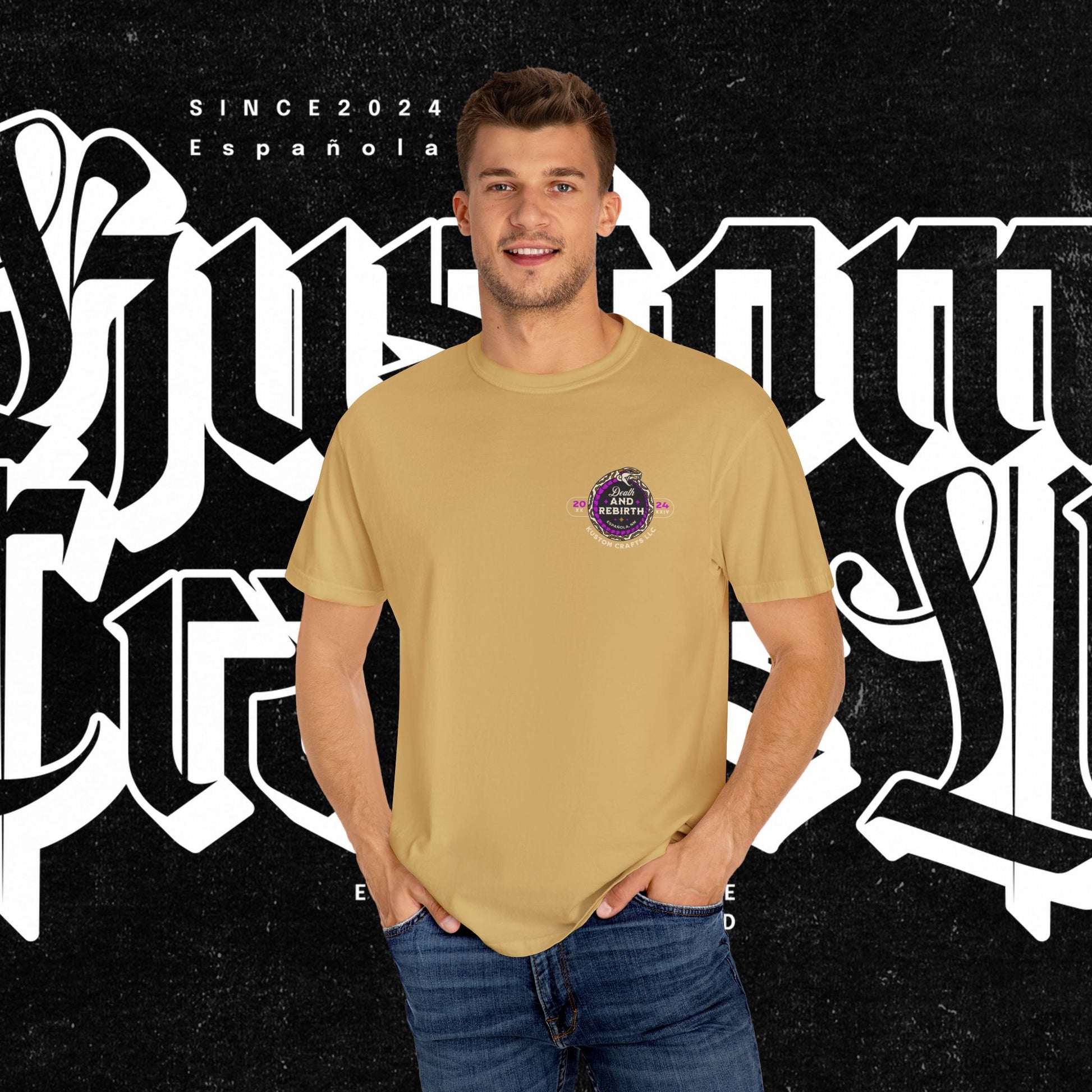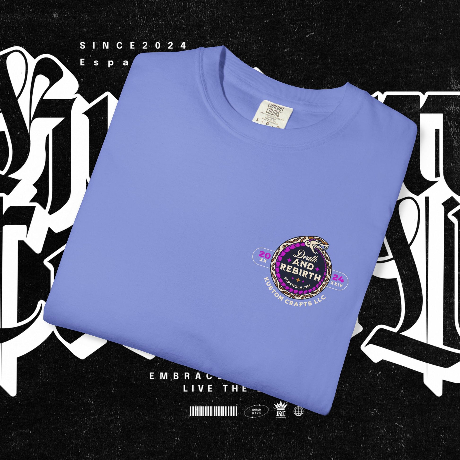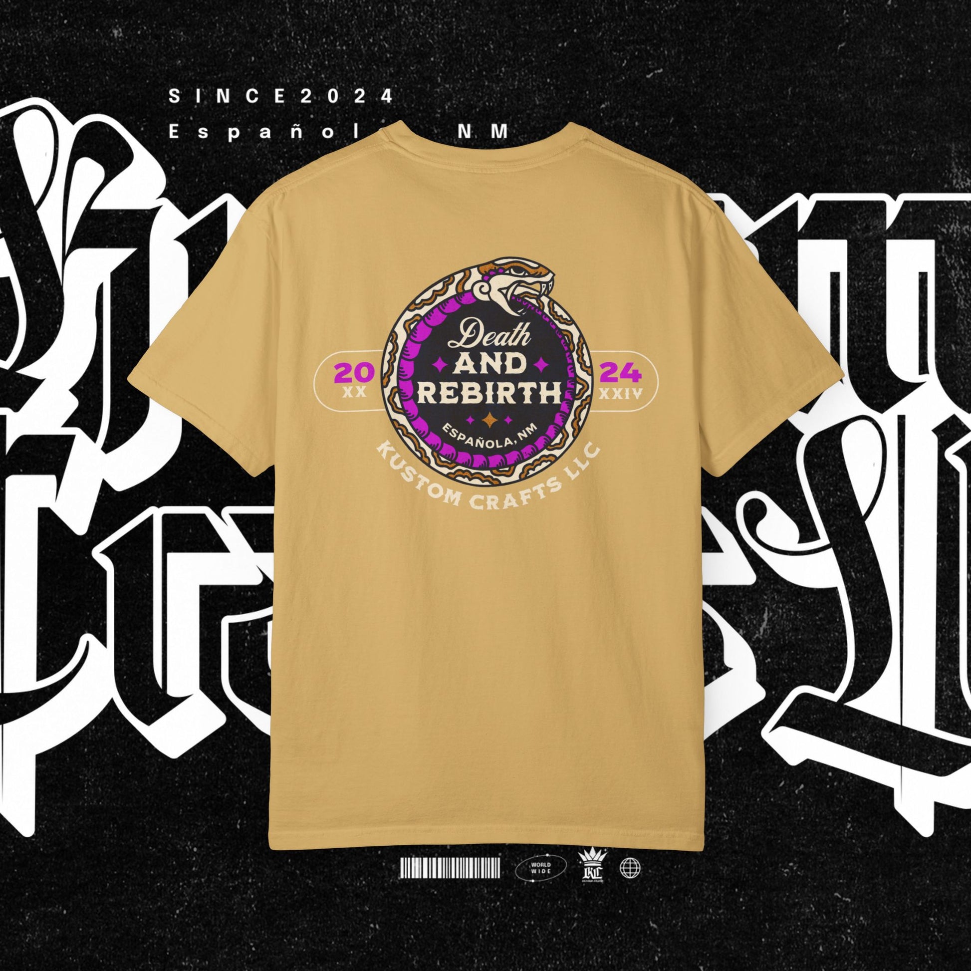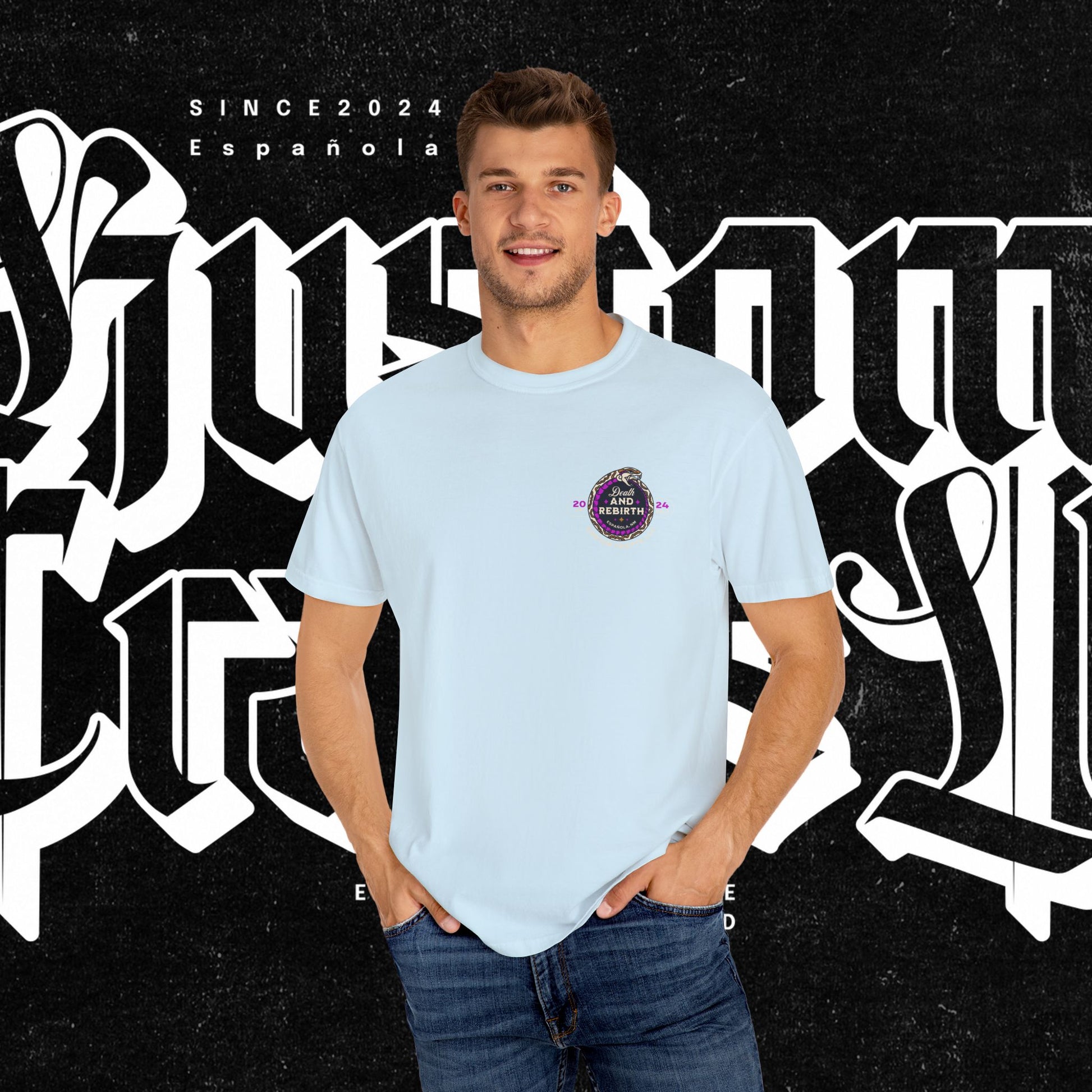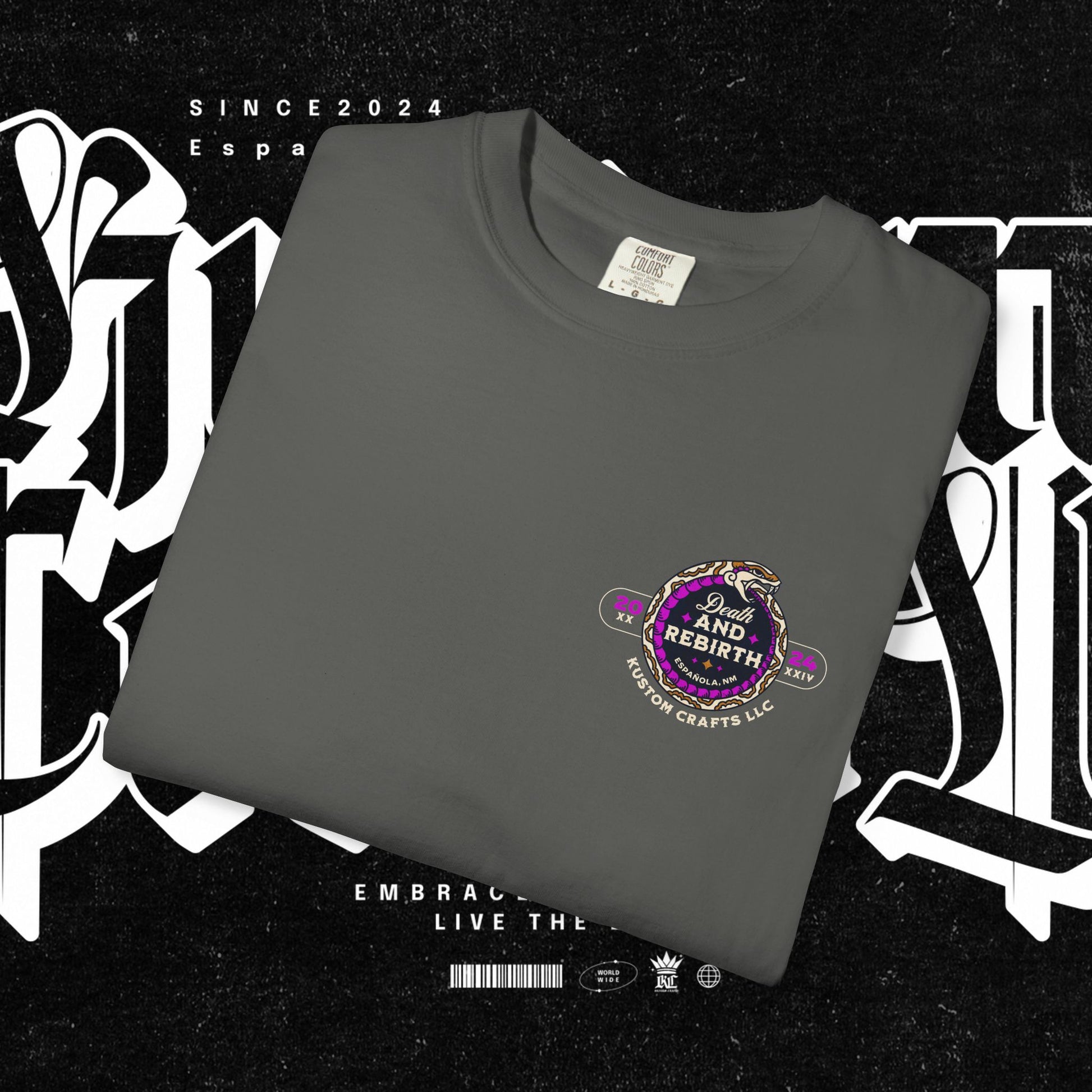 This graphic t-shirt features a striking snake design symbolizing death and rebirth, making it a perfect addition to any streetwear collection. The unisex garment-dyed t-shirt offers a relaxed fit and comfortable feel, suitable for both casual and semi-formal settings. Ideal for adults looking for a unique and edgy style, this t-shirt is perfect for holidays, celebrations, and everyday wear.