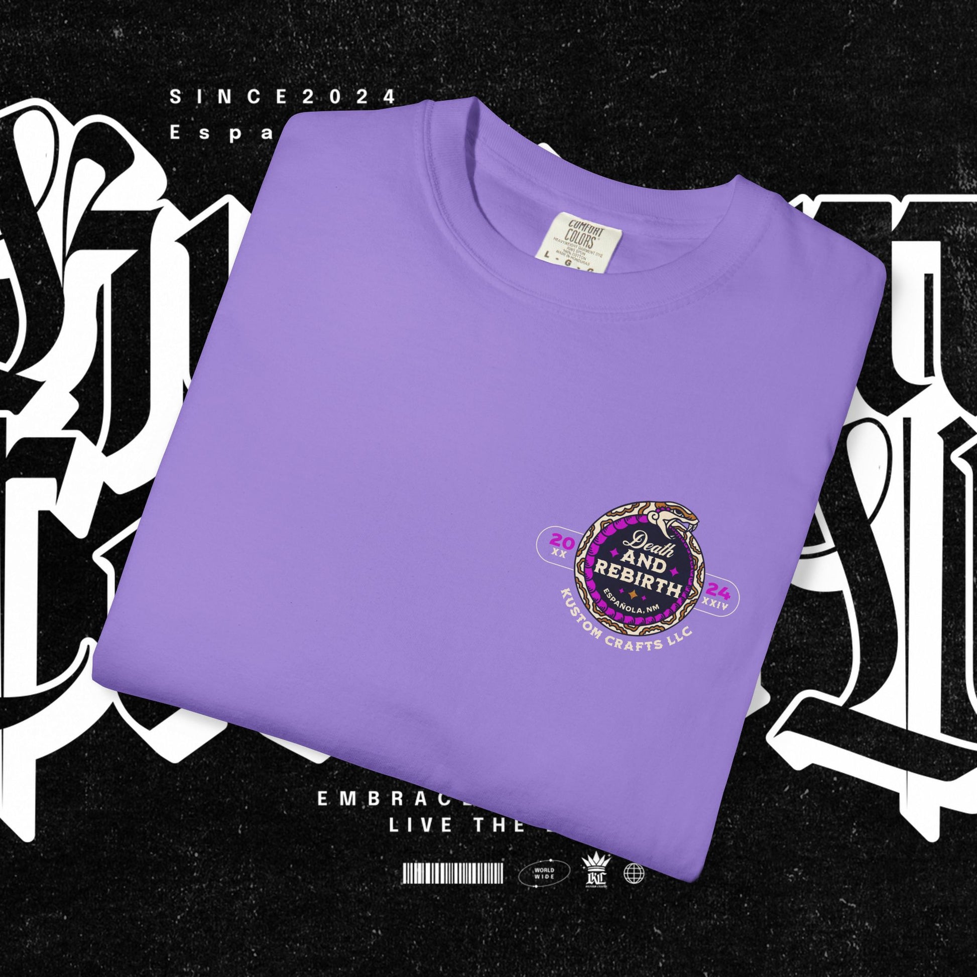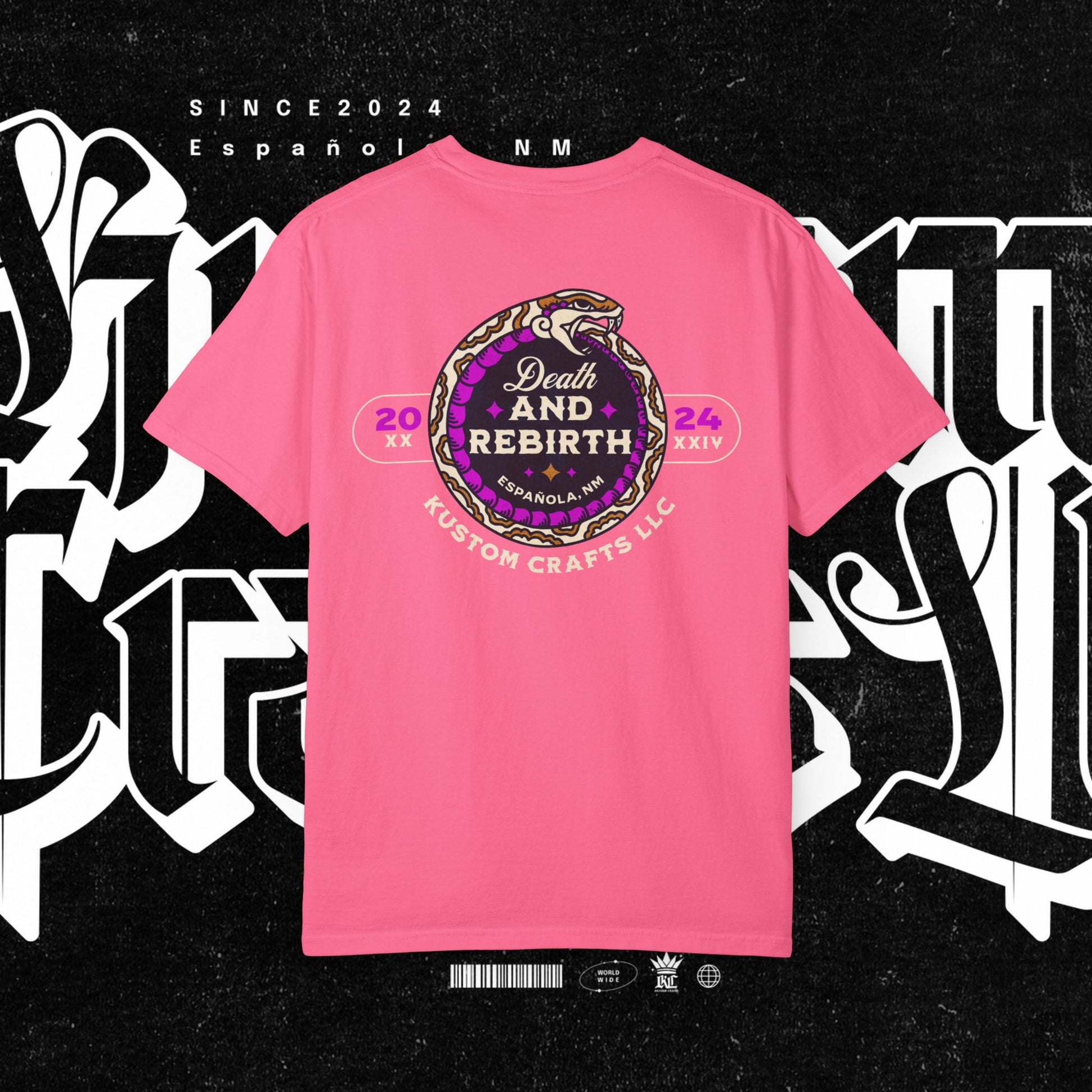 Death and Rebirth Bright Purple/Pink Snake Graphic Tee, Death Rebirth Unisex T-shirt, Streetwear Alternative Fashion, Serpent Design Shirt, Edgy Clothing