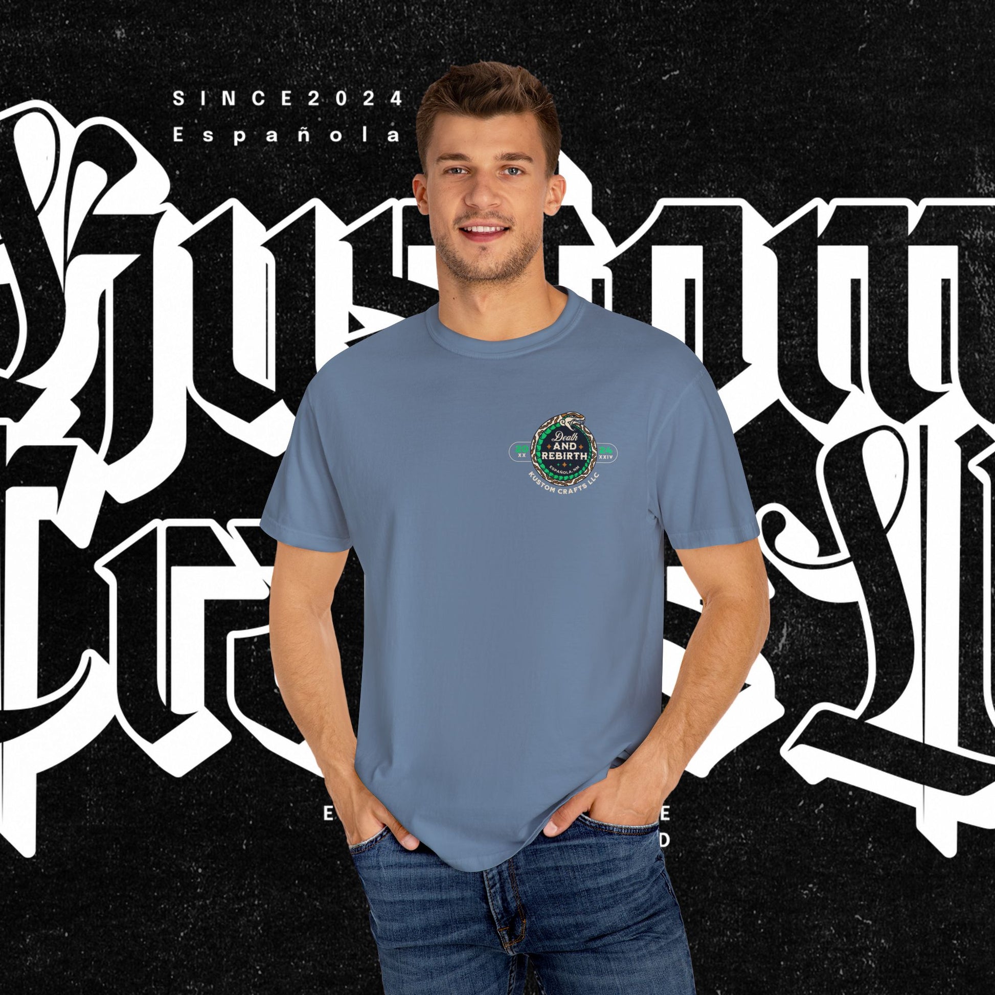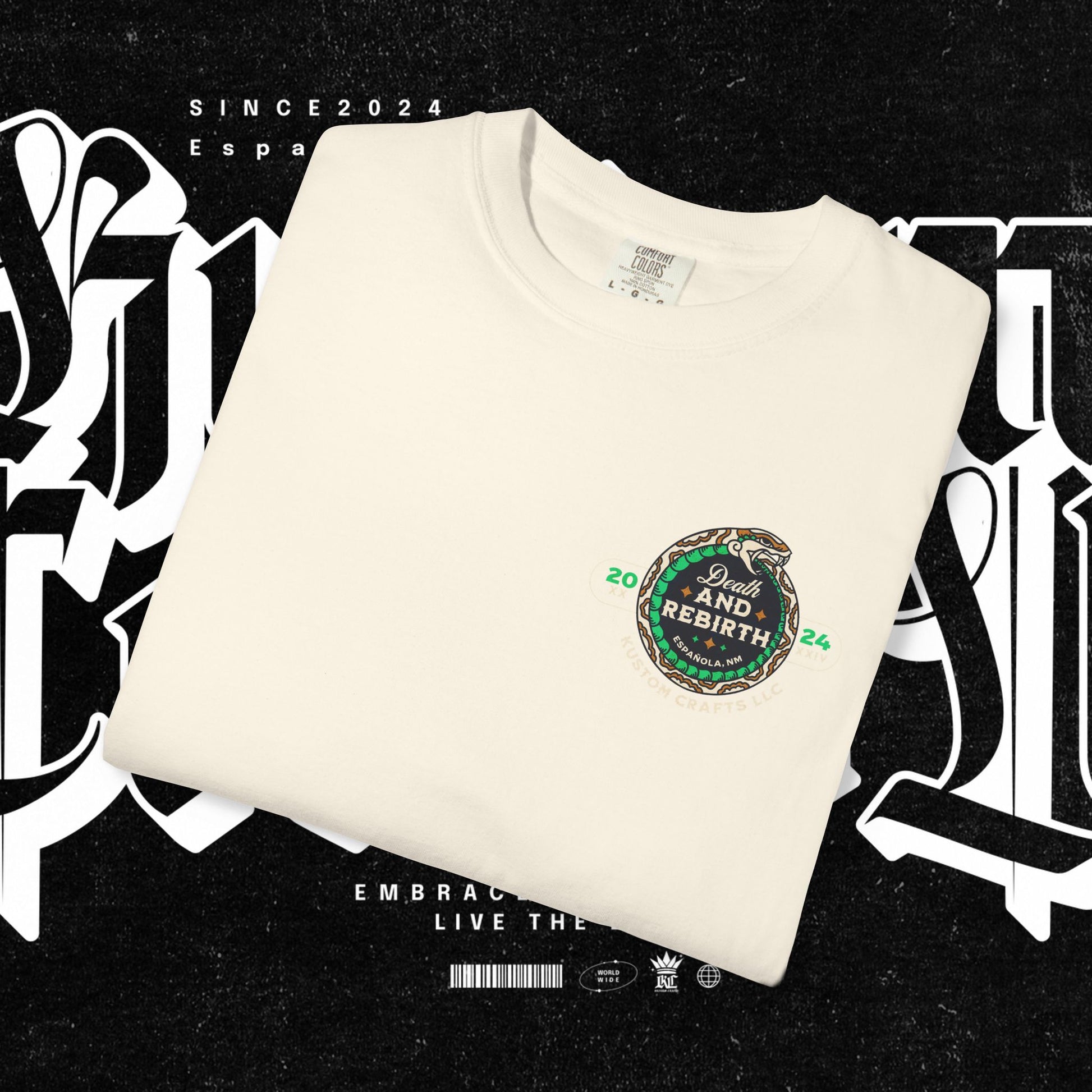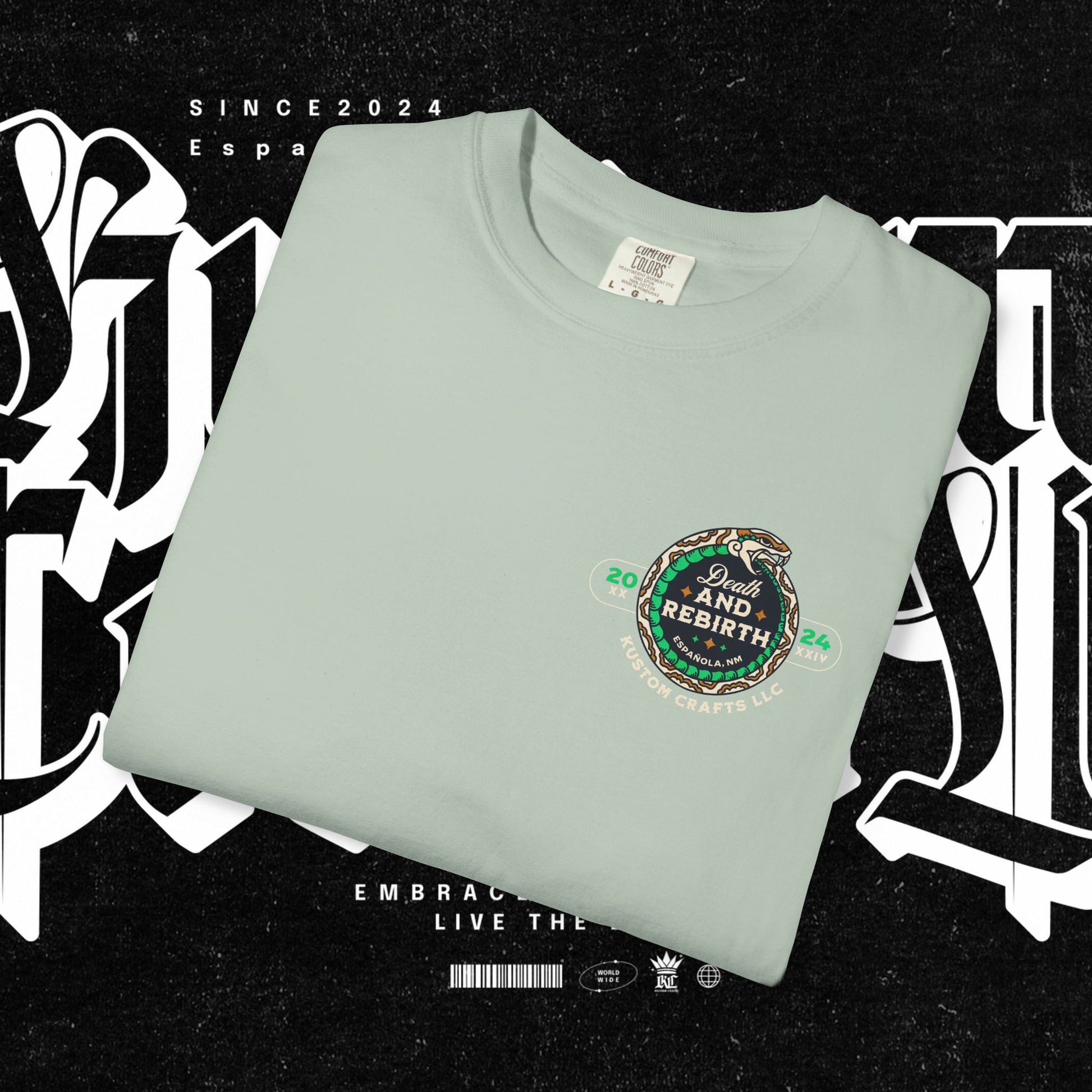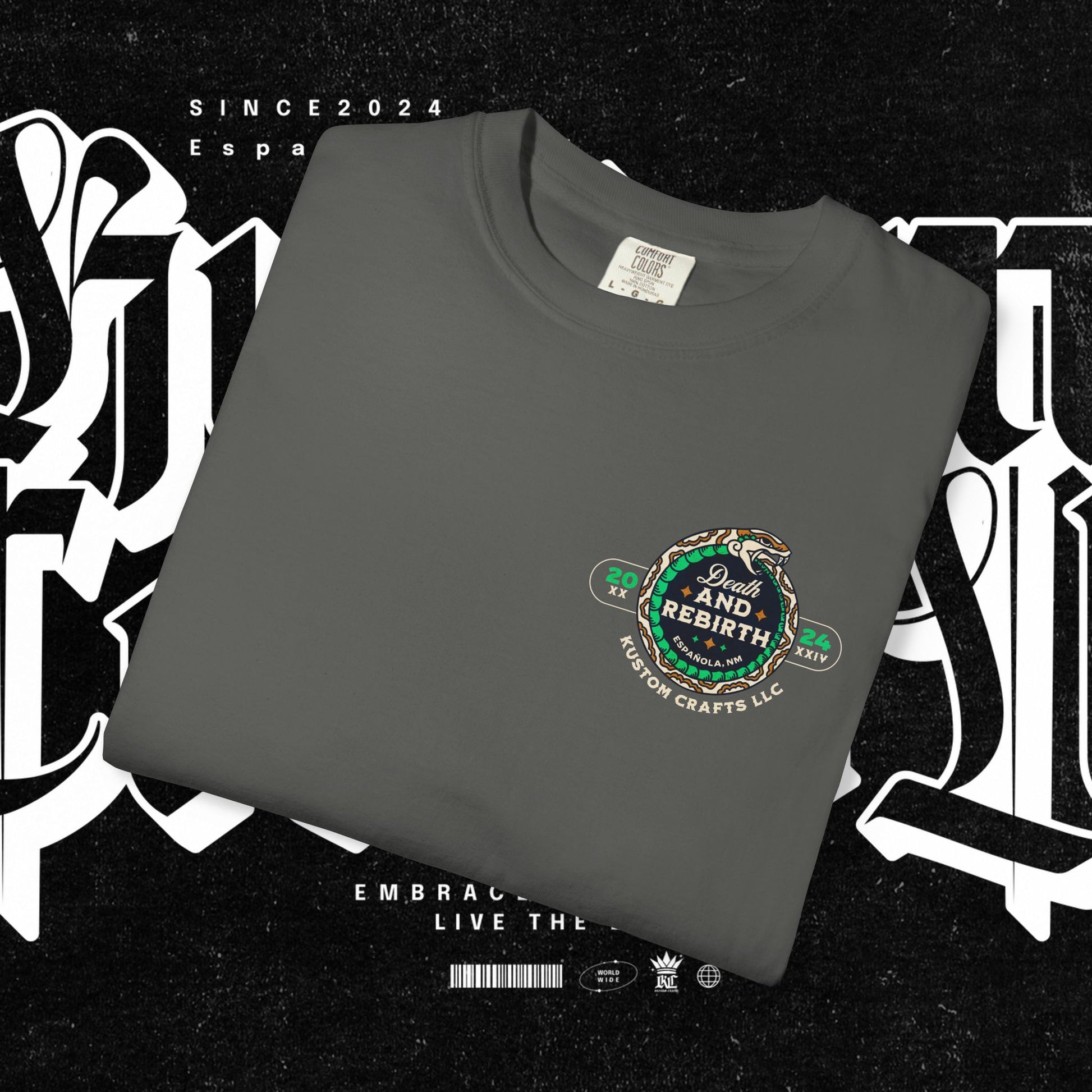 This graphic t-shirt features a striking snake design symbolizing death and rebirth, making it a perfect addition to any streetwear collection. The unisex garment-dyed t-shirt offers a relaxed fit and comfortable feel, suitable for both casual and semi-formal settings. Ideal for adults looking for a unique and edgy style, this t-shirt is perfect for holidays, celebrations, and everyday wear.
