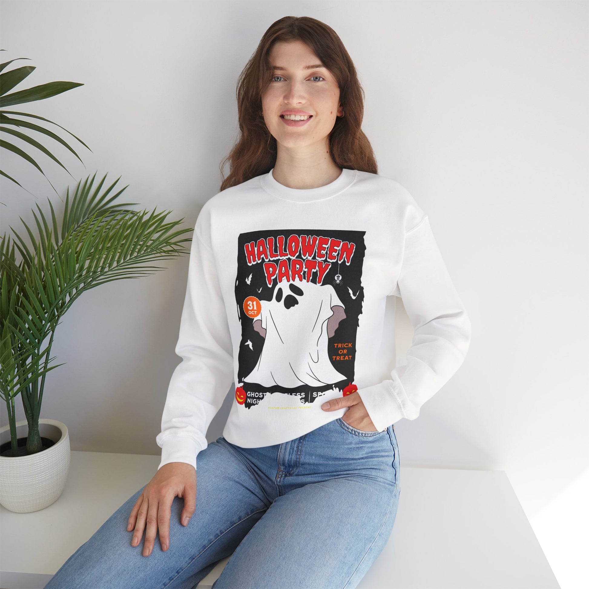 Halloween Party Sweatshirt, Spooky Season Apparel, Ghost Design Crewneck, Unisex Halloween Gift, Cozy Fall Fashion