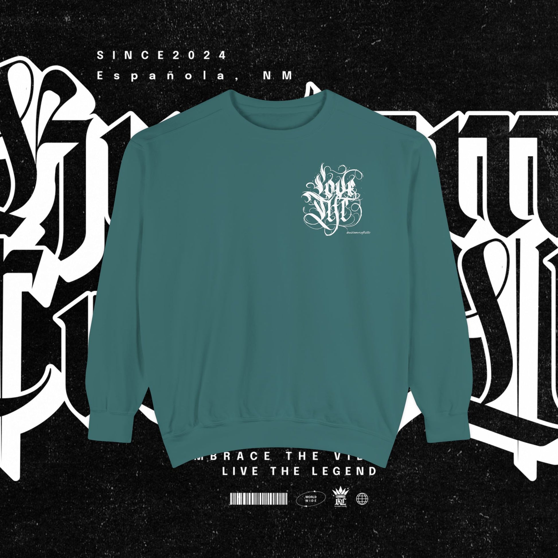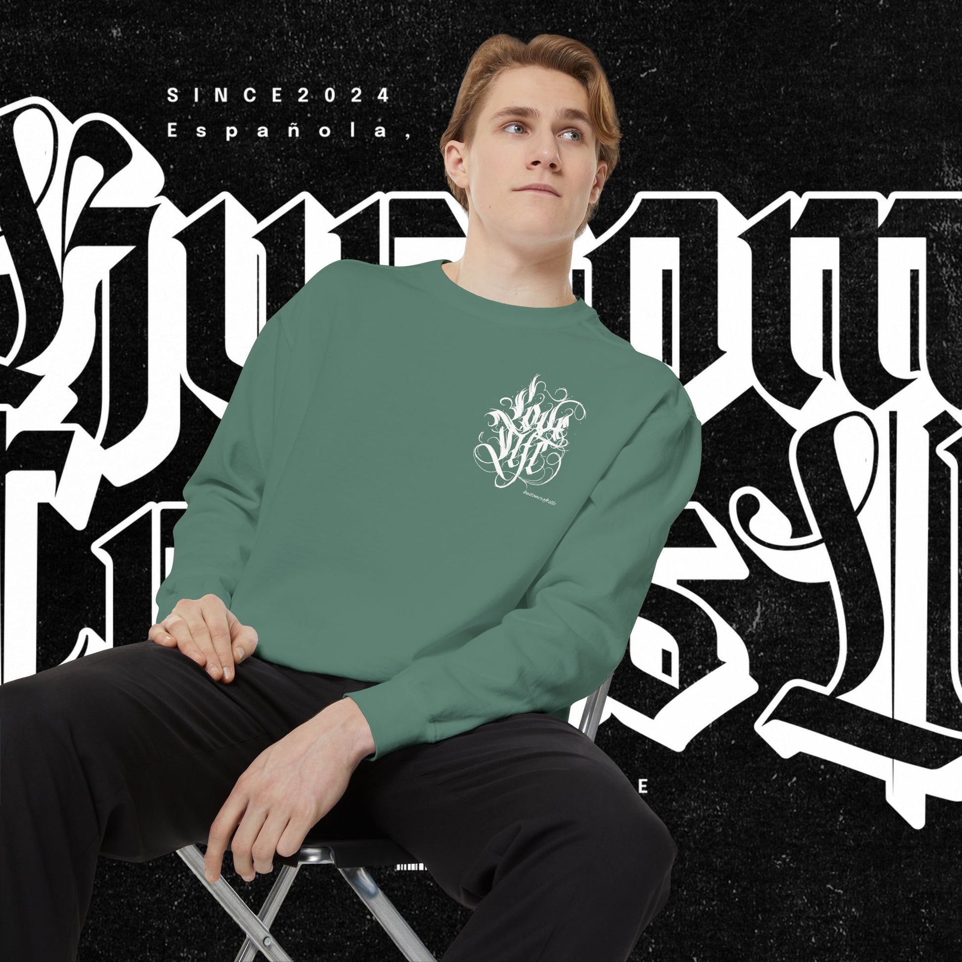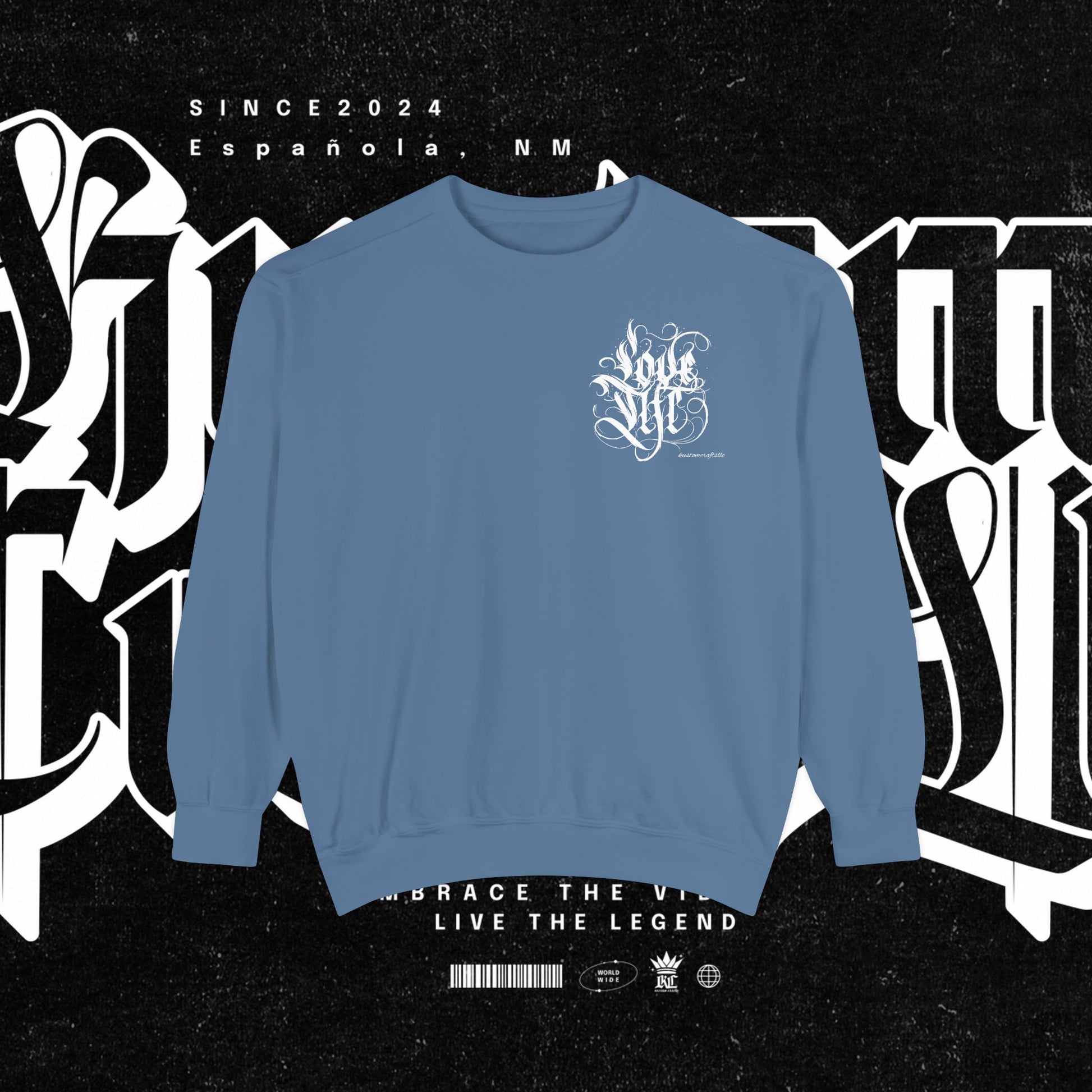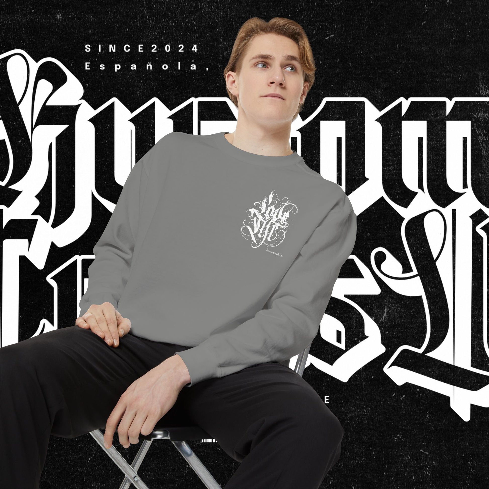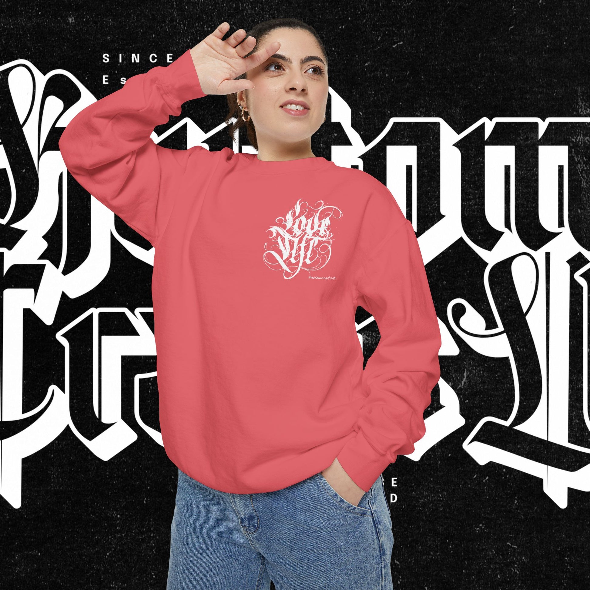 Love Life Graffiti Garment-Dyed Sweatshirt for Cozy Days, Unisex Comfortable Crewneck, Perfect Gift for Birthdays, Holidays, Casual Wear