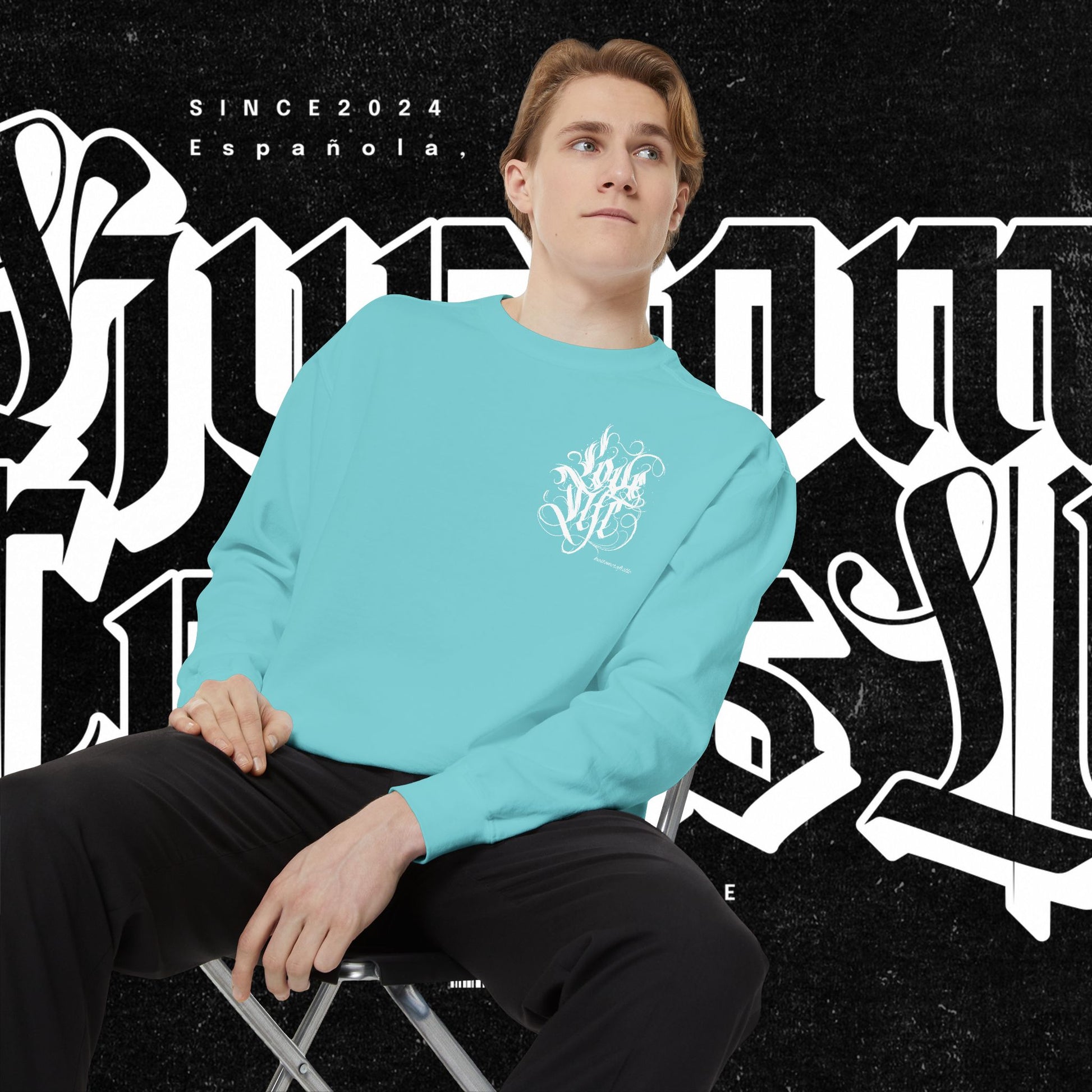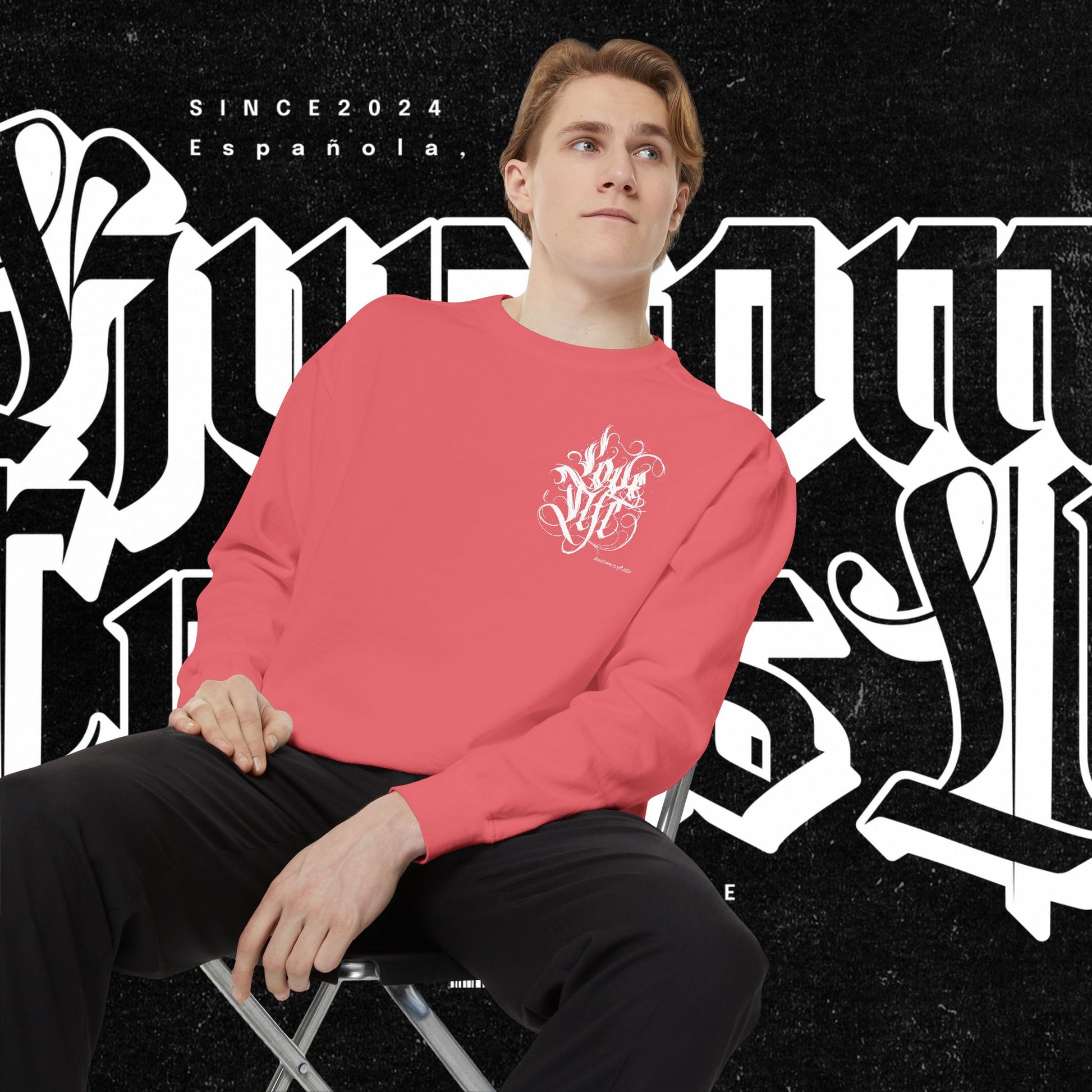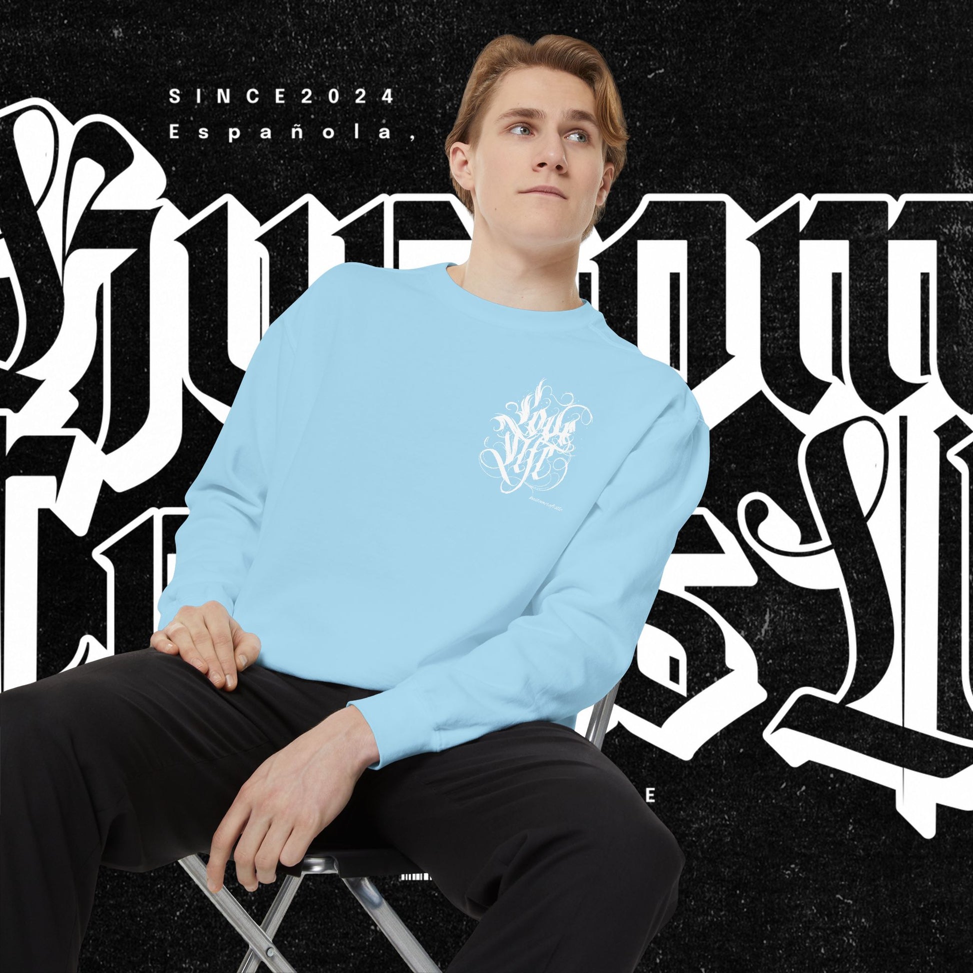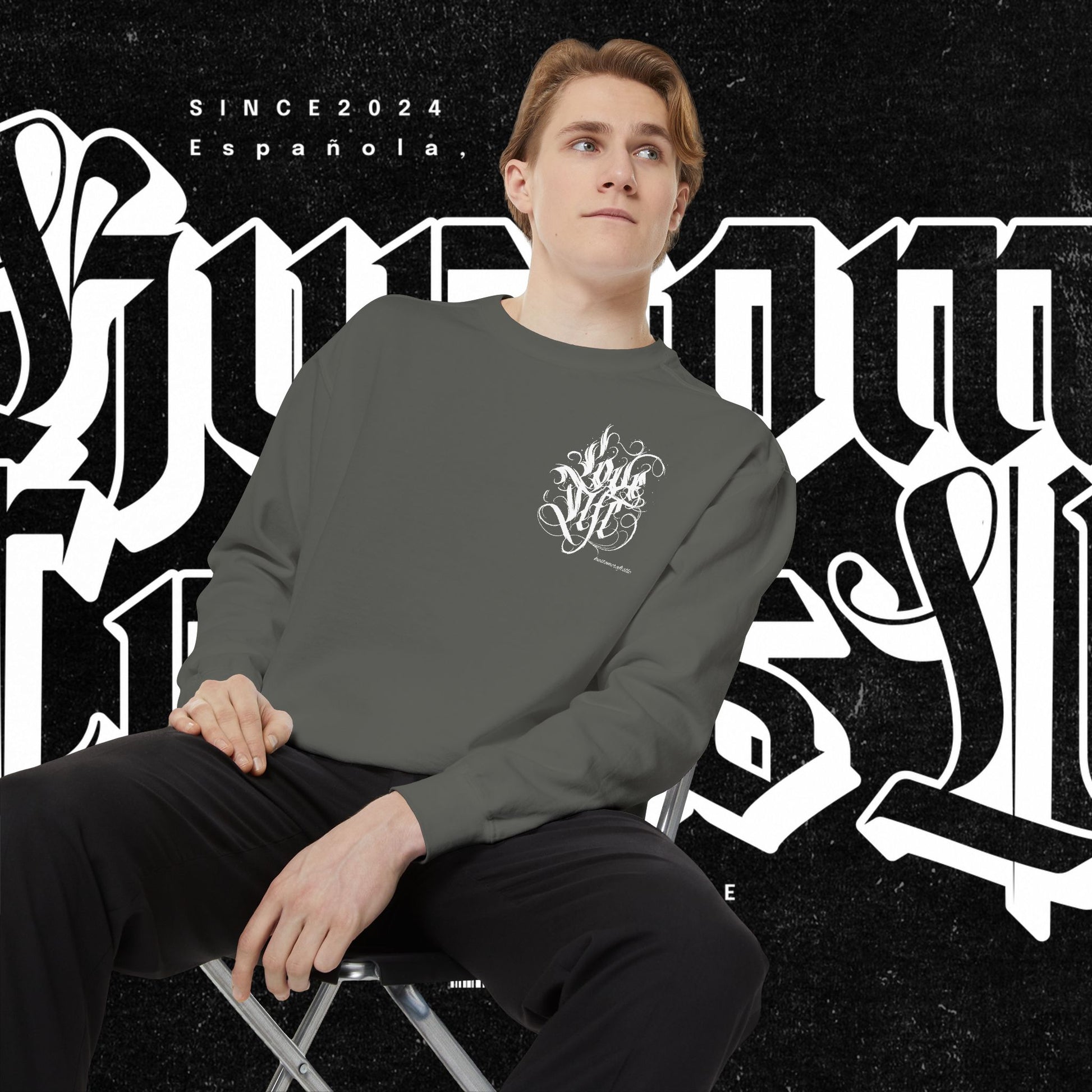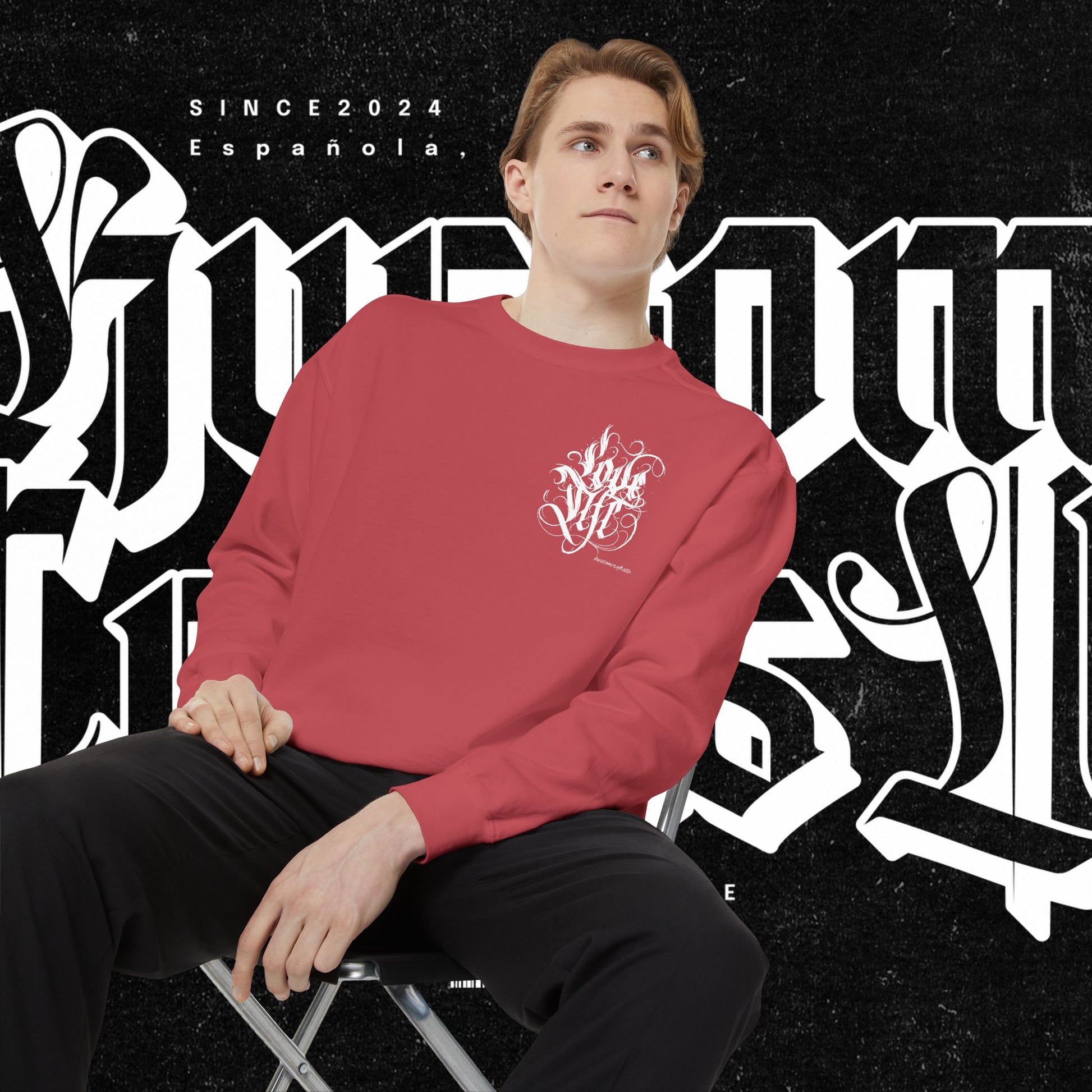 Love Life Graffiti Garment-Dyed Sweatshirt for Cozy Days, Unisex Comfortable Crewneck, Perfect Gift for Birthdays, Holidays, Casual Wear