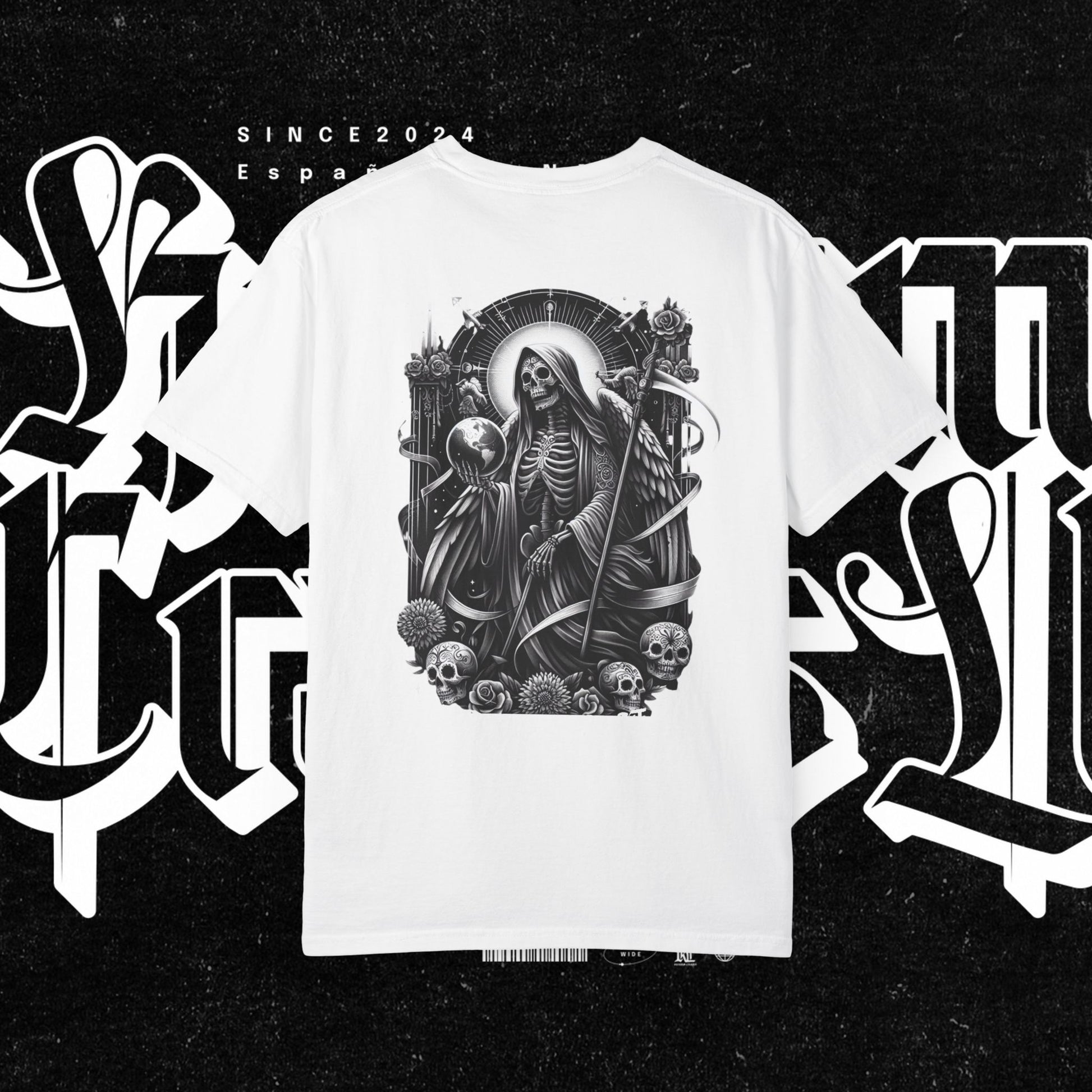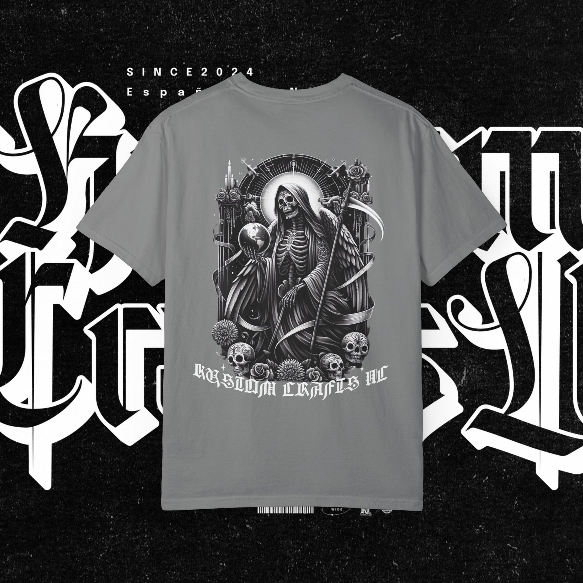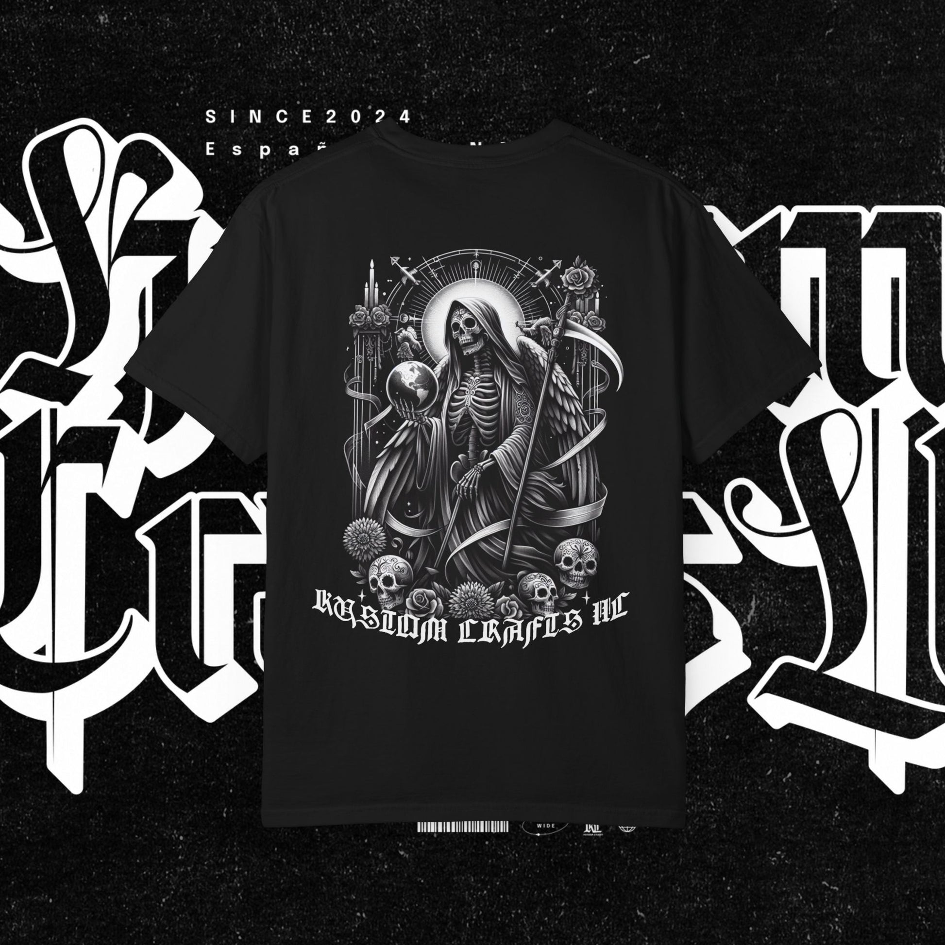 Check out this Santa Muerte T-shirt by Kustom Crafts LLC. Perfect for adults, this unisex garment-dyed tee offers a relaxed fit for ultimate comfort in casual or semi-formal settings. The classic crew neckline makes it easy to accessorize, while the soft color and texture from the garment-dyed fabric adds a unique touch to your wardrobe. Ideal for celebrating Christmas and other festive occasions.