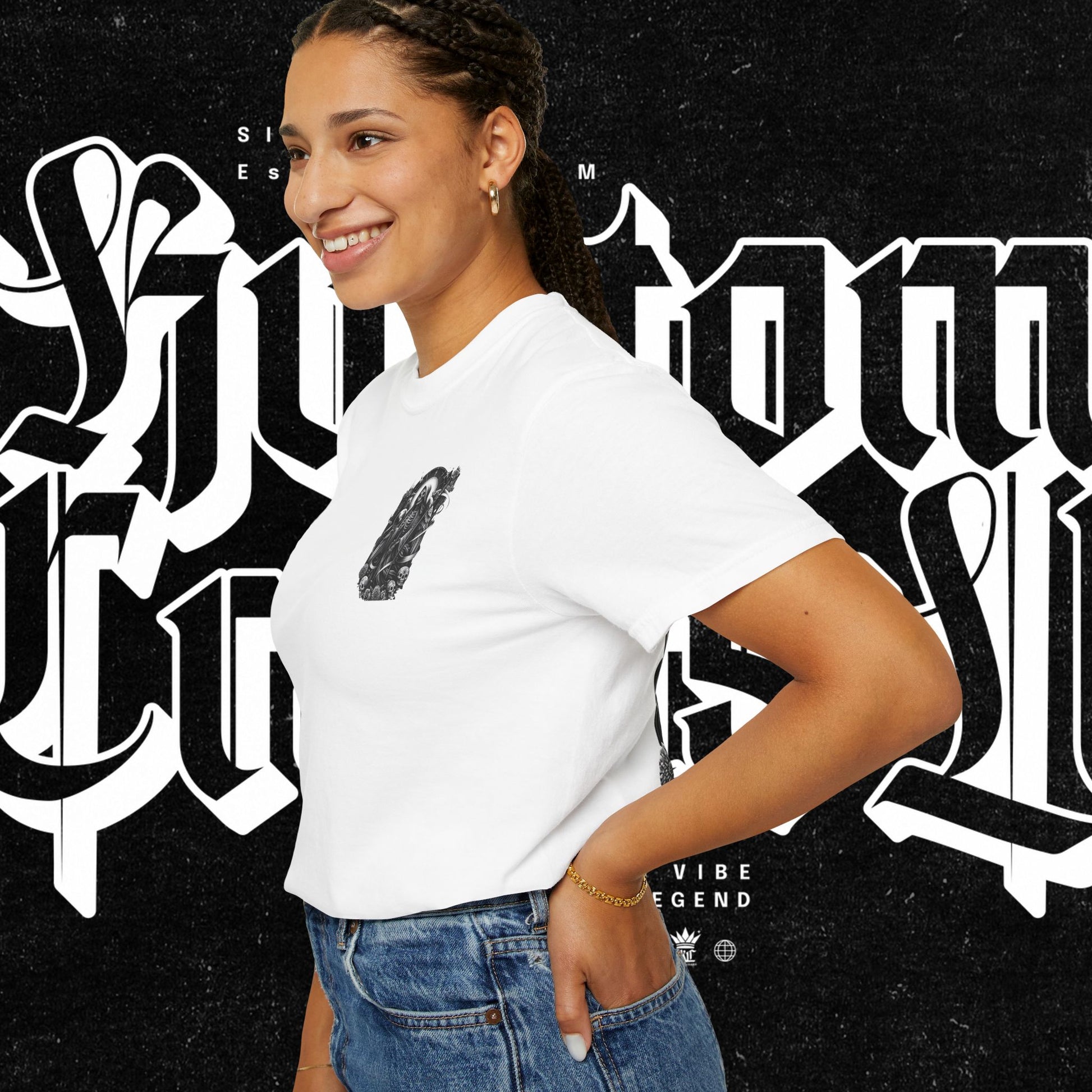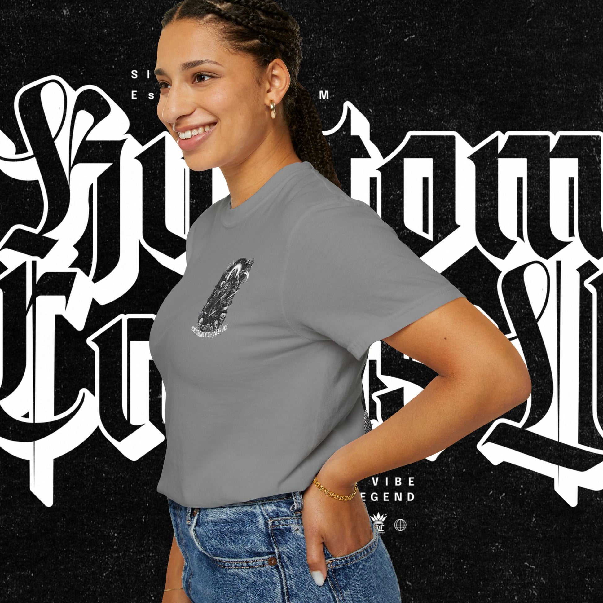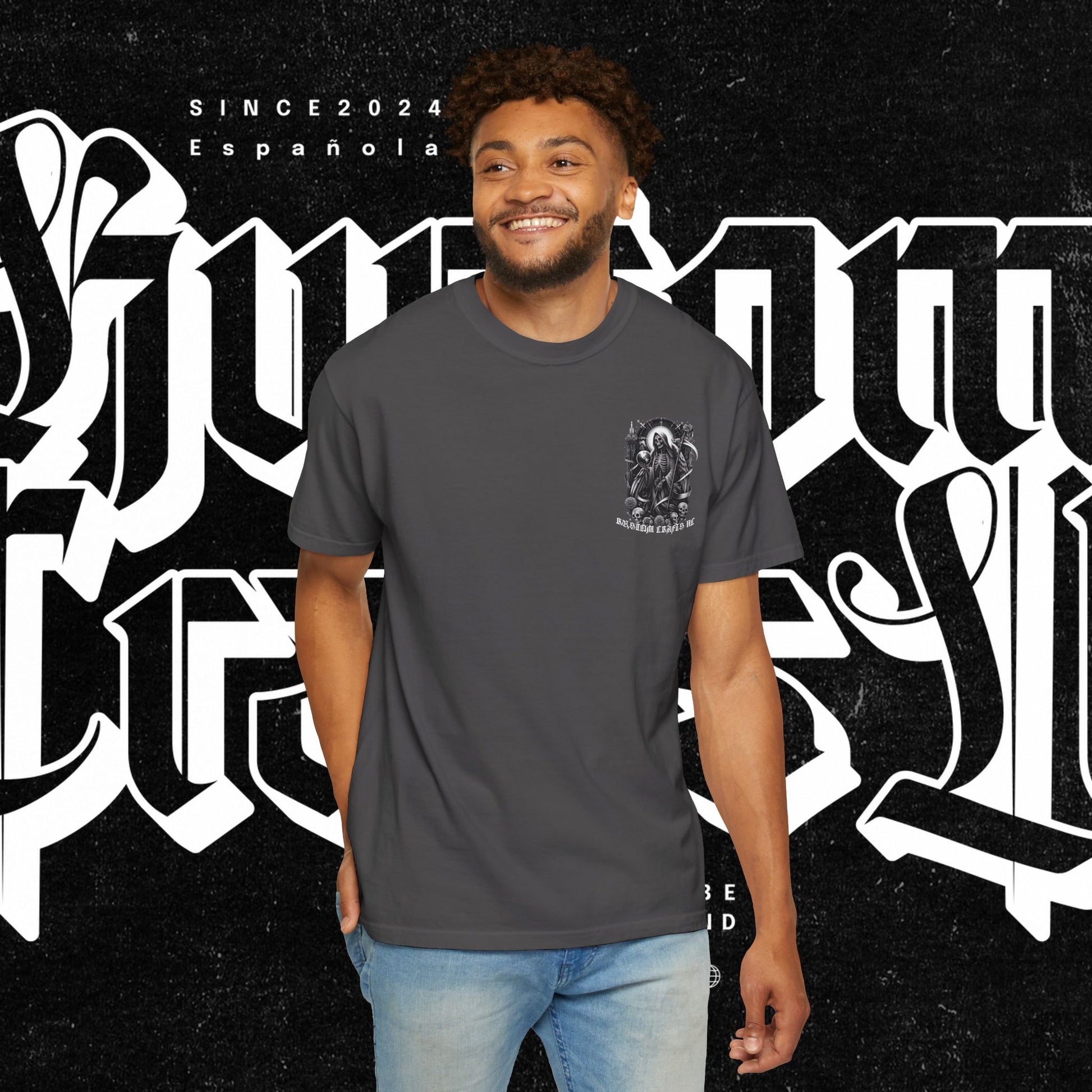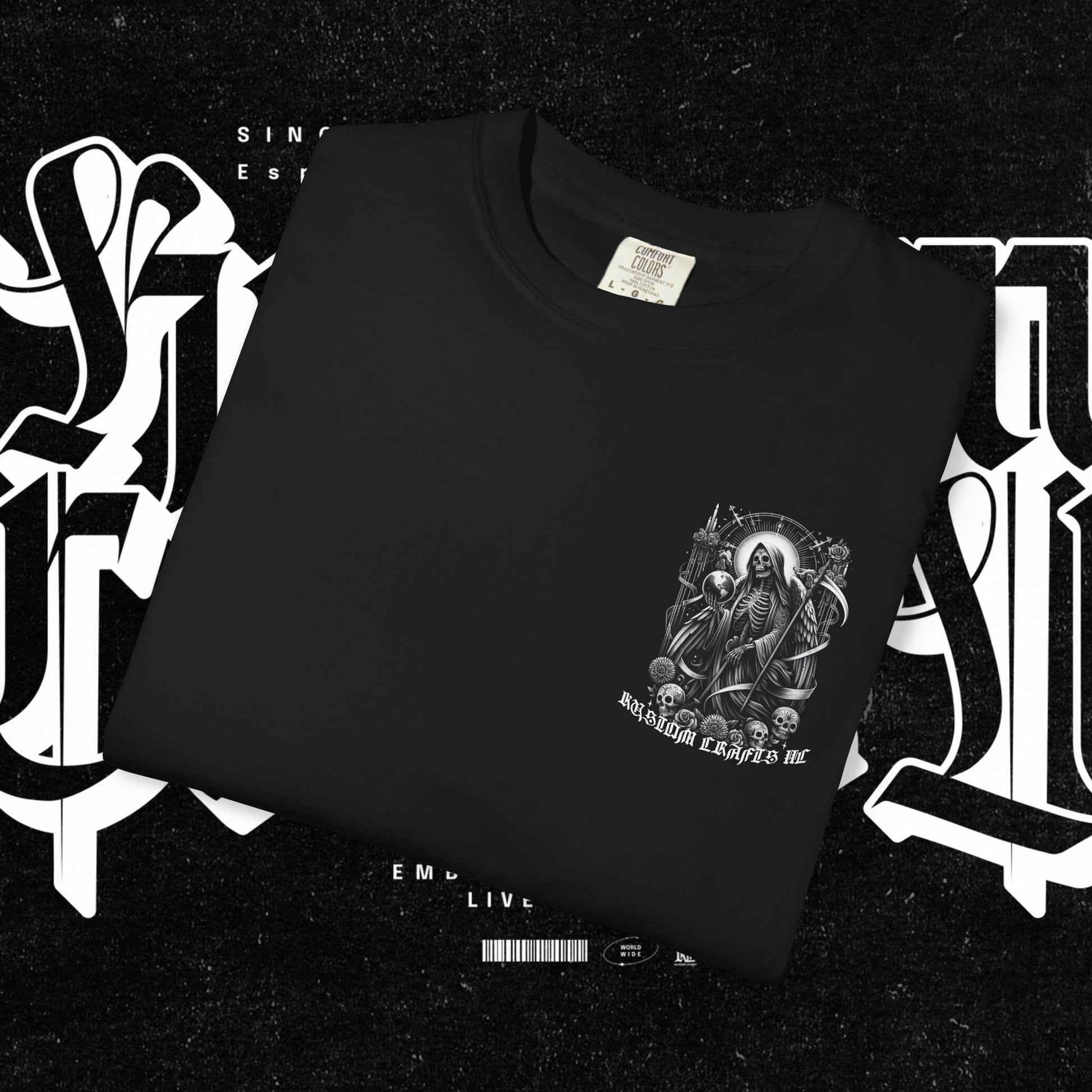 Check out this Santa Muerte T-shirt by Kustom Crafts LLC. Perfect for adults, this unisex garment-dyed tee offers a relaxed fit for ultimate comfort in casual or semi-formal settings. The classic crew neckline makes it easy to accessorize, while the soft color and texture from the garment-dyed fabric adds a unique touch to your wardrobe. Ideal for celebrating Christmas and other festive occasions.