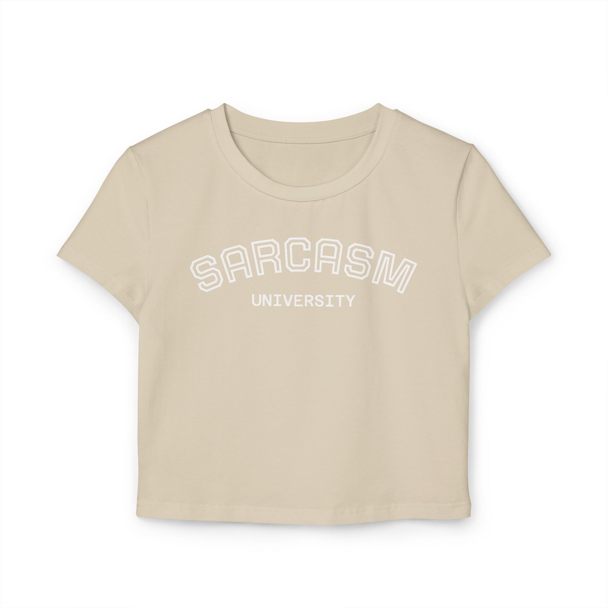 Sarcasm University Women's Baby Tee - Fun Humor T-Shirt, Gift for Friends, Cute Casual Top, College Style, Perfect Birthday Gift