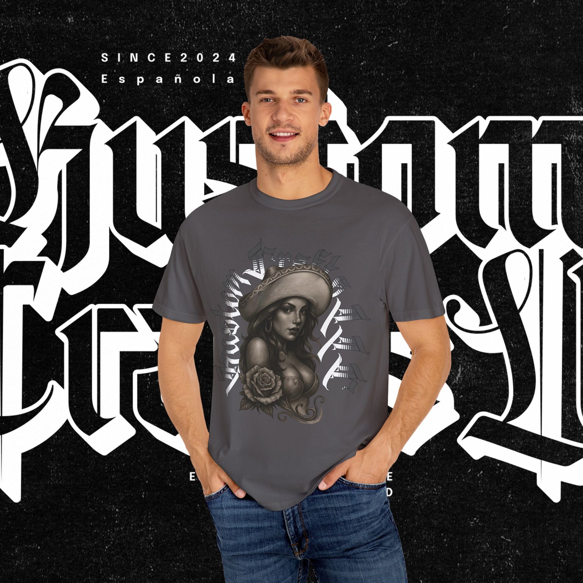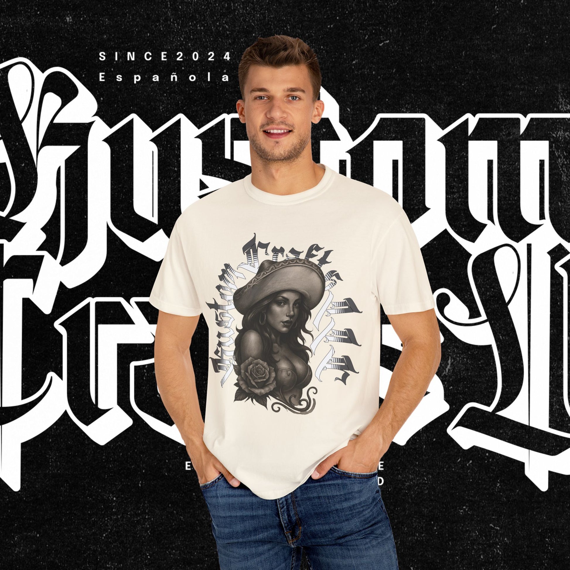 The Senora Street T-shirt by kustom crafts llc exudes a trendy and urban vibe, perfect for casual outings or layering under a jacket. This unisex garment-dyed tee is ideal for adults looking for a comfortable and stylish wardrobe staple. It is relevant for holidays, festivals, concerts, and everyday wear.