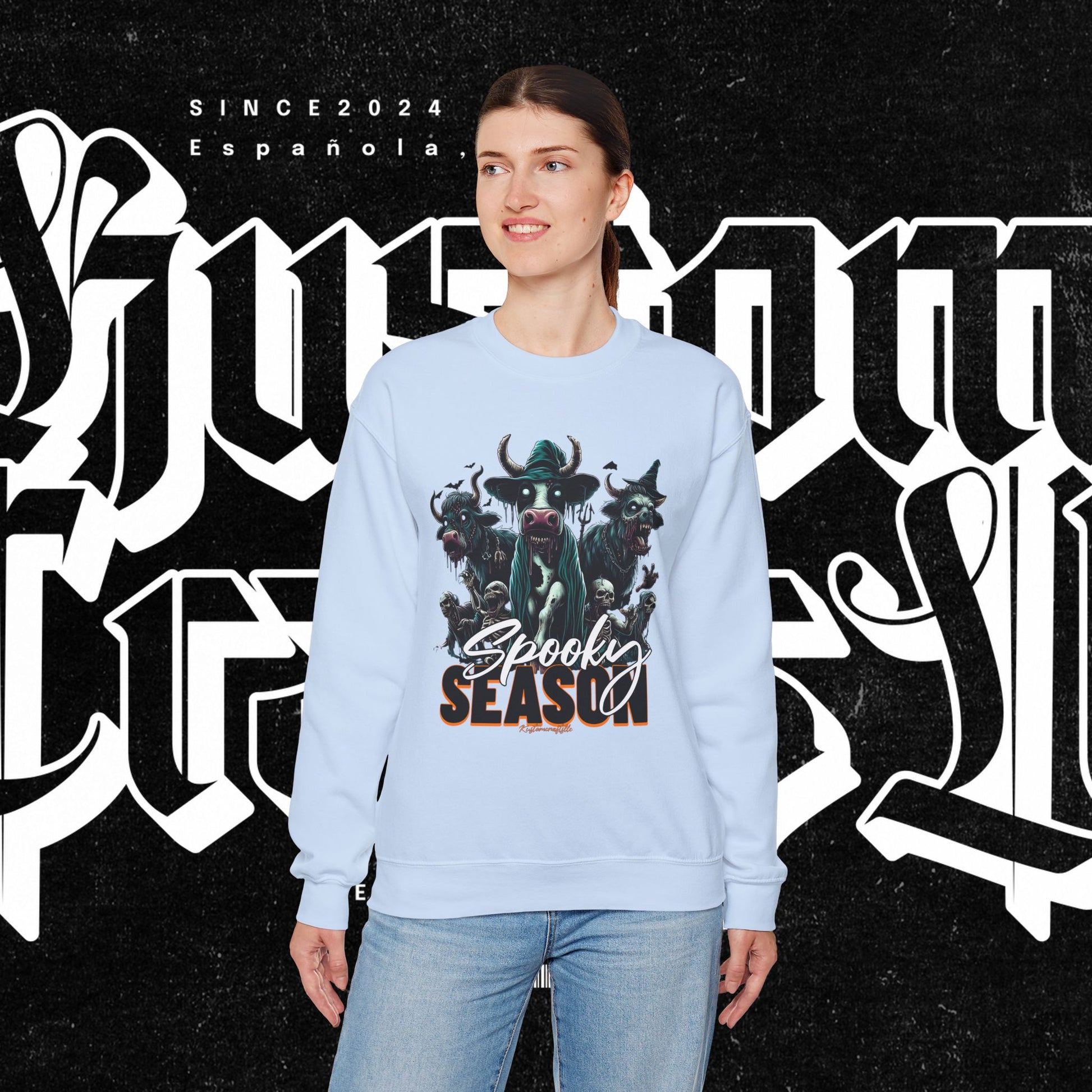 Spooky Cow Season Crewneck Sweatshirt, Halloween Apparel, Unisex Halloween Sweatshirt, Cozy Fall Fashion, Unique Gift Idea